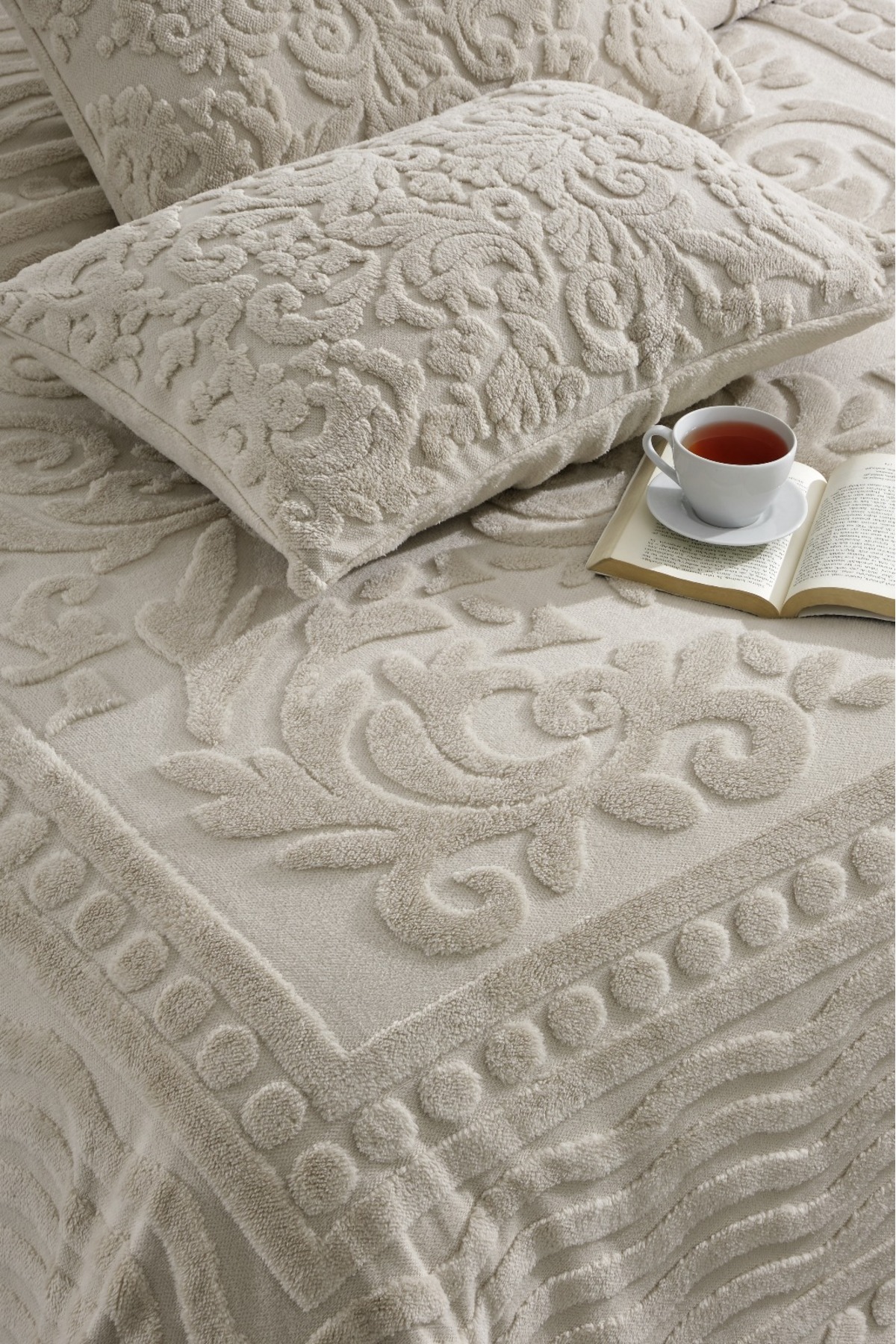 BİRHOME Sierra Jakarlı Şönil Çift Kişilik Yatak Örtüsü (krem)