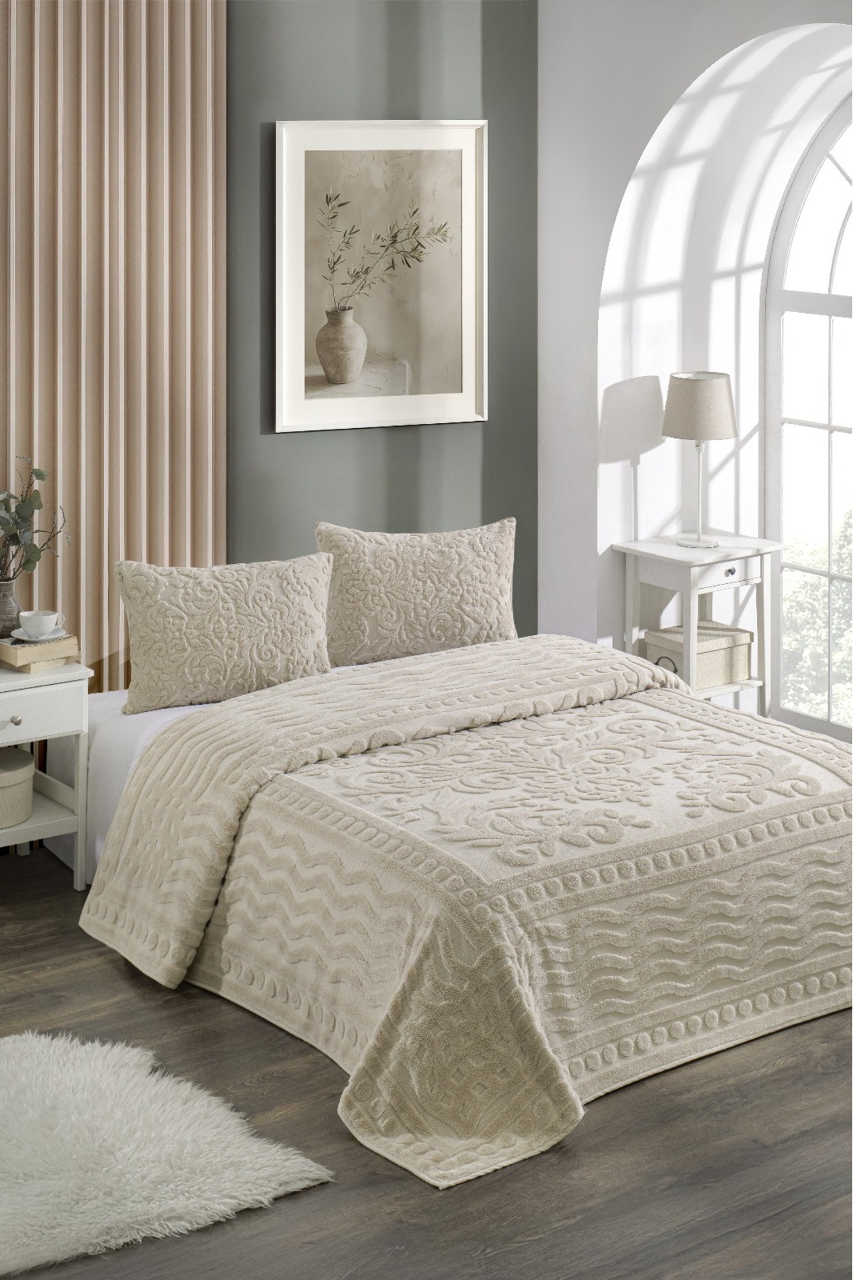 BİRHOME Sierra Jakarlı Şönil Çift Kişilik Yatak Örtüsü (bej)