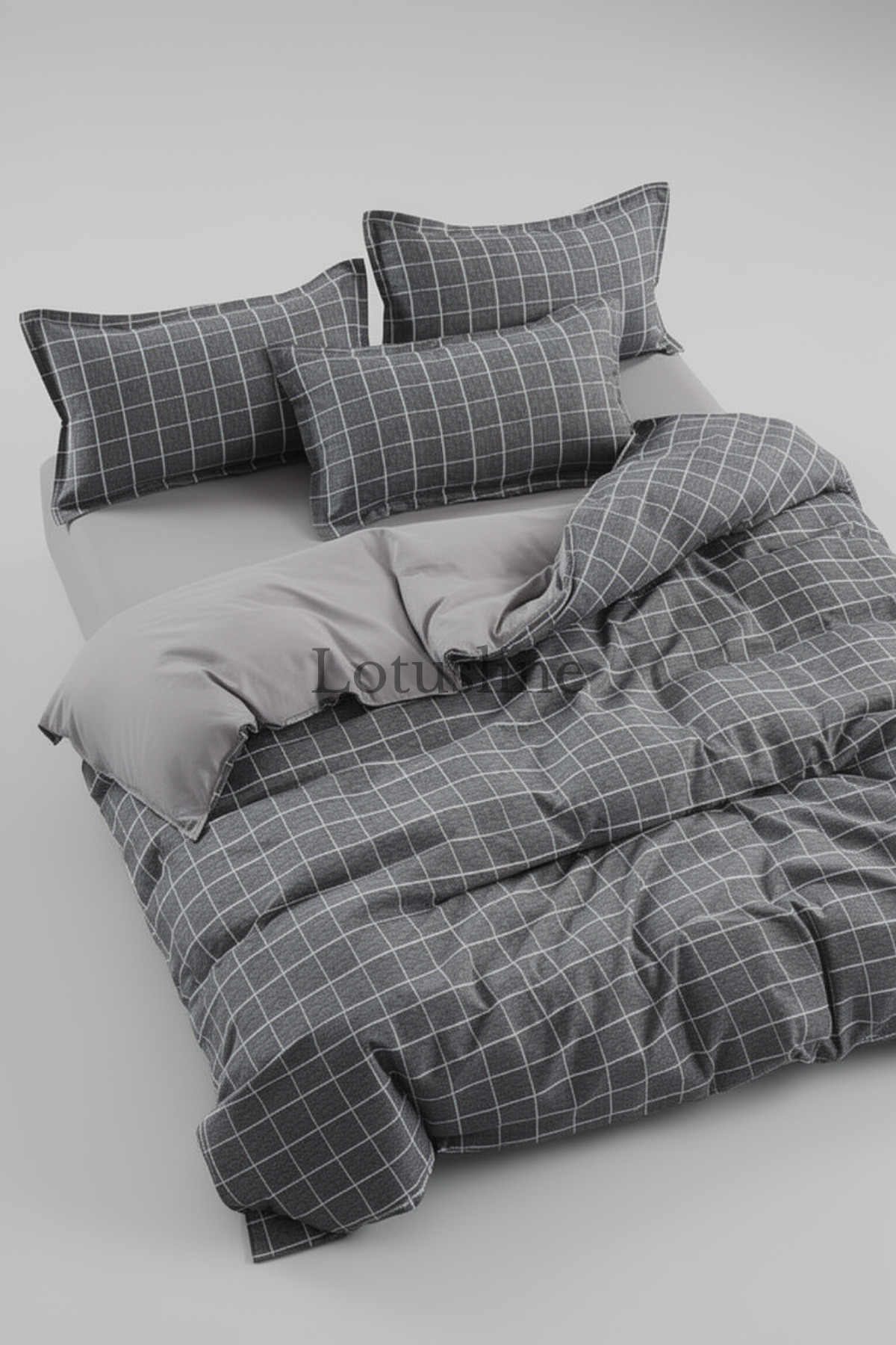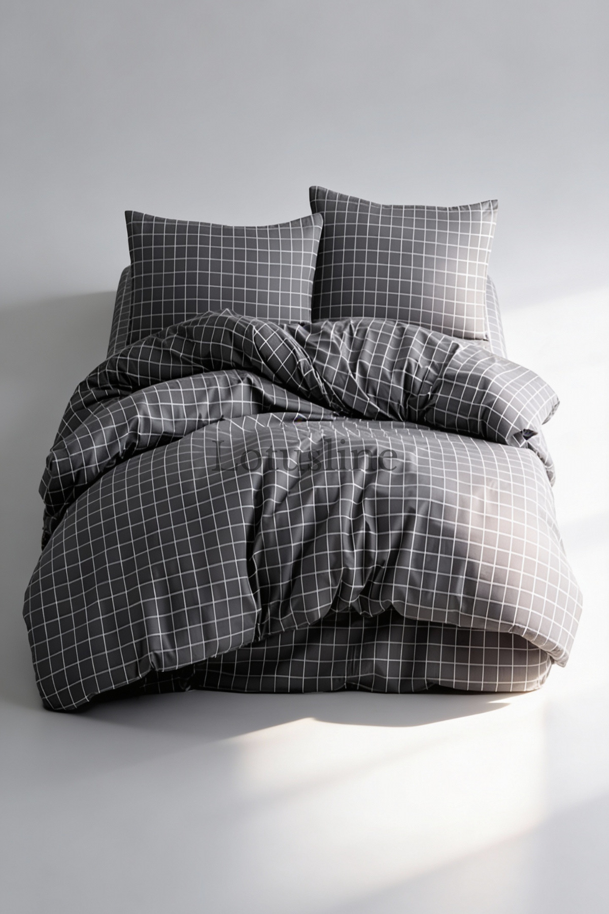 Lotusline Home Minikaro Füme Tek Kişilik Pamuklu Nevresim Seti Çift Taraflı