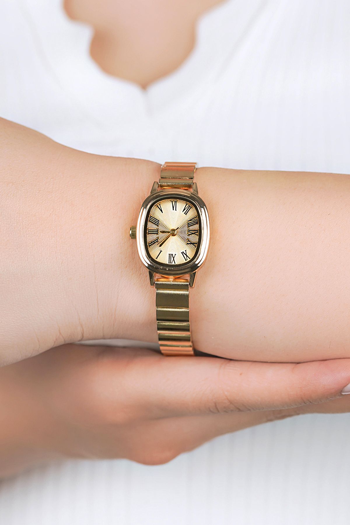 Louis Genessio Retro Minimal Oval IPC Kaplama Gold Kadın Kol Saati