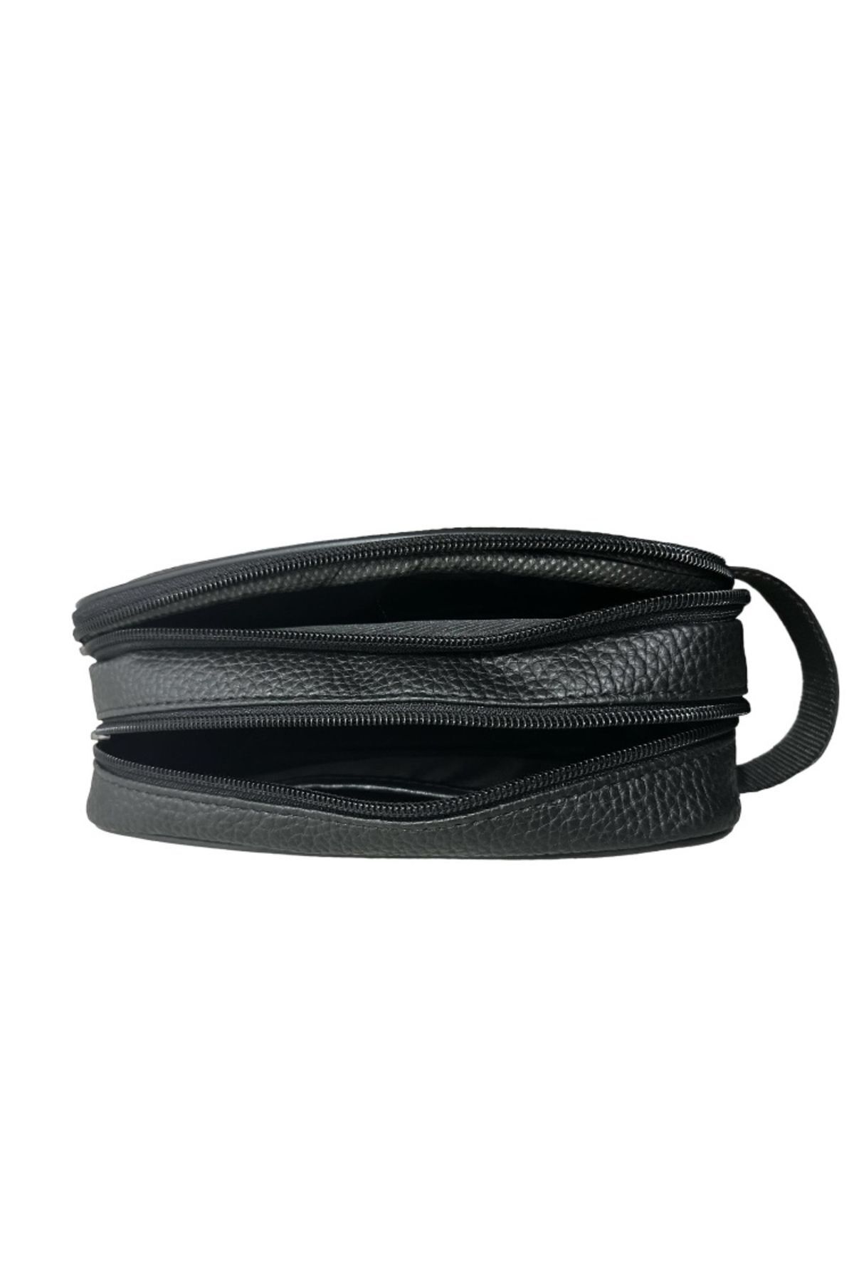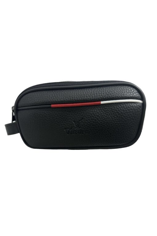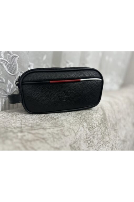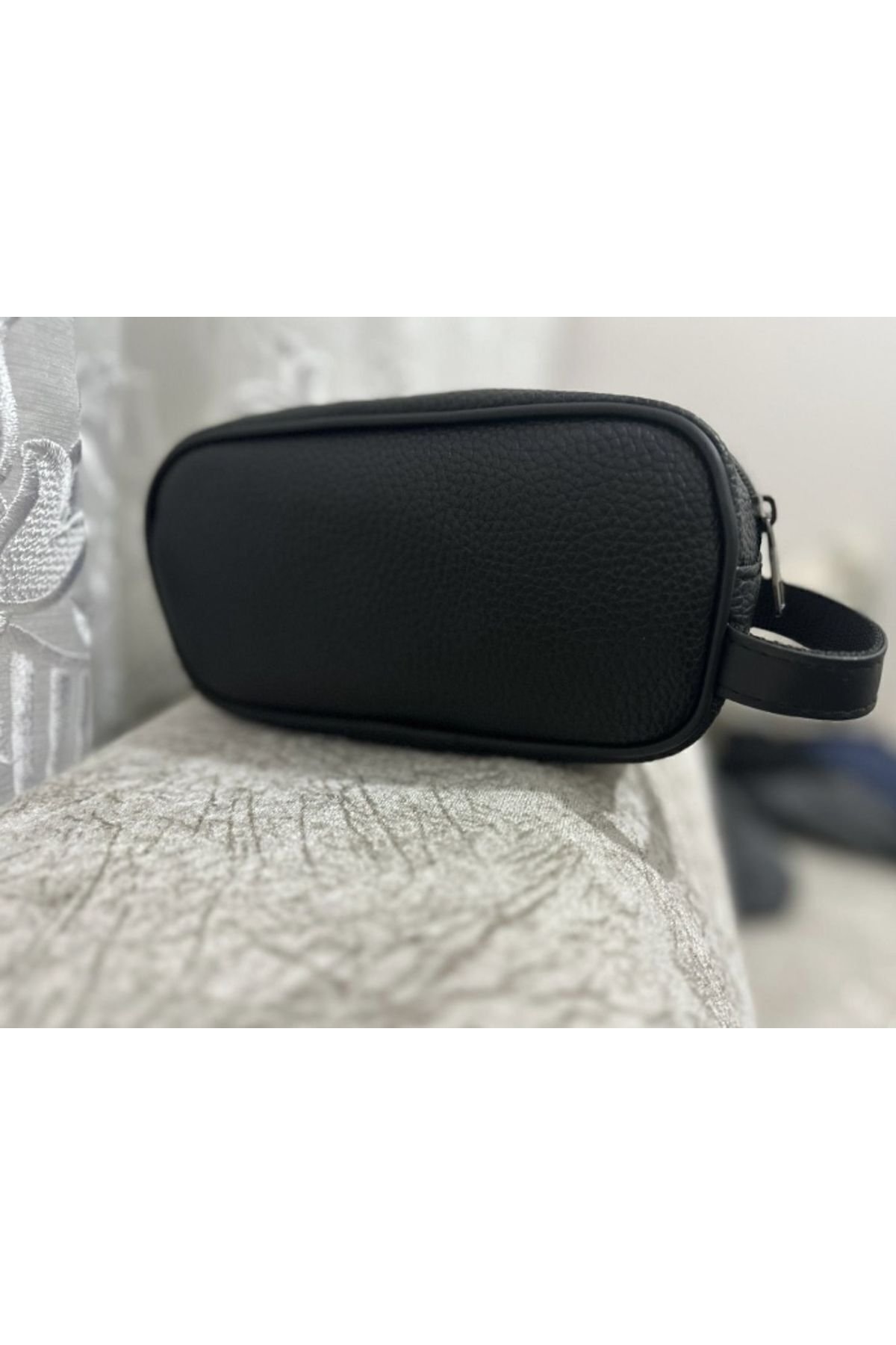 Erzeno Siyah Hakiki Deri Erkek Tıraş el Portföy&Clutch Bakım Çantası