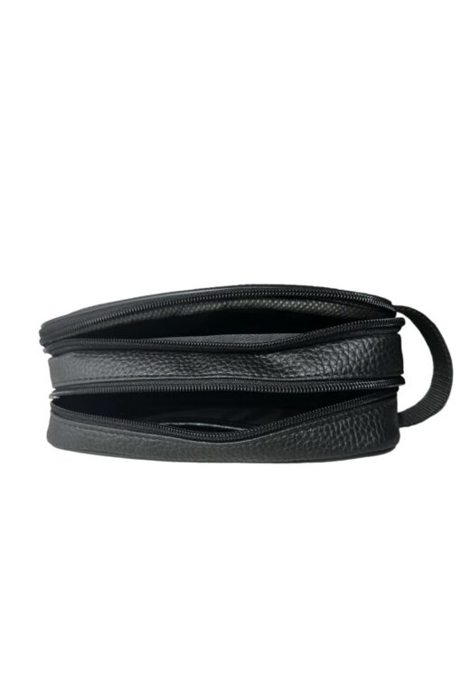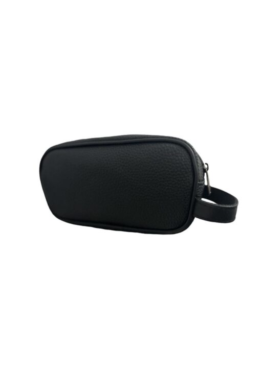 Erzeno Hakiki Deri Siyah Erkek El Çantası – Seyahat Çantası – Kozmetik Çantası – Tıraş Çantası