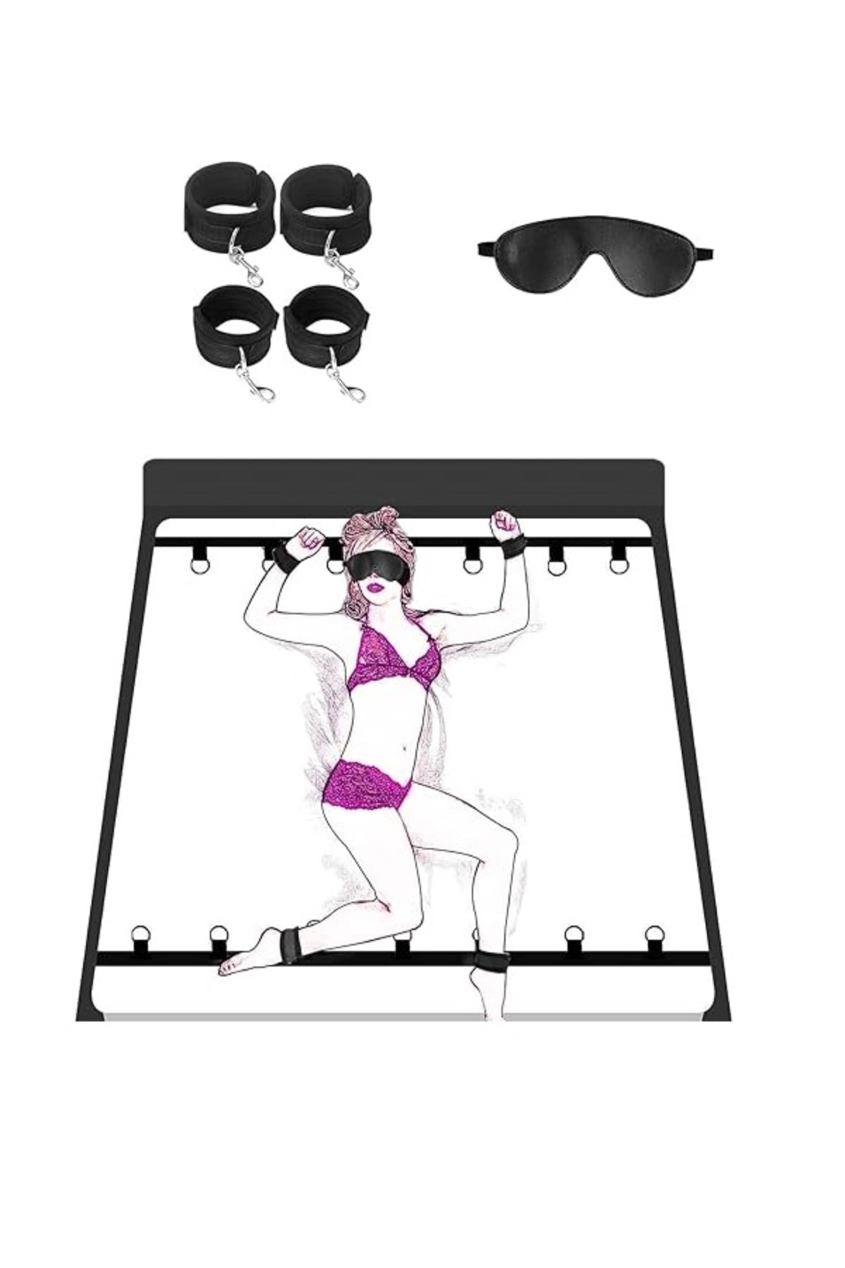 lovegame Yatak Odası Kolonlu Kayış Yetişkin Kısıtlama Seti Yatak Kelepçe Seti