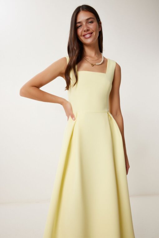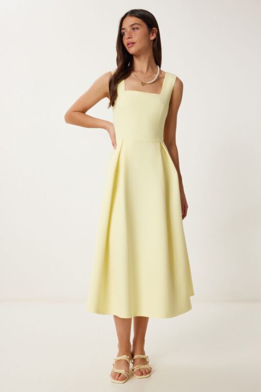 Lovelyİstanbul A Kesim Midi Dokuma Elbise SARI LWF0026 Fiyatları, Özellikleri ve Yorumları