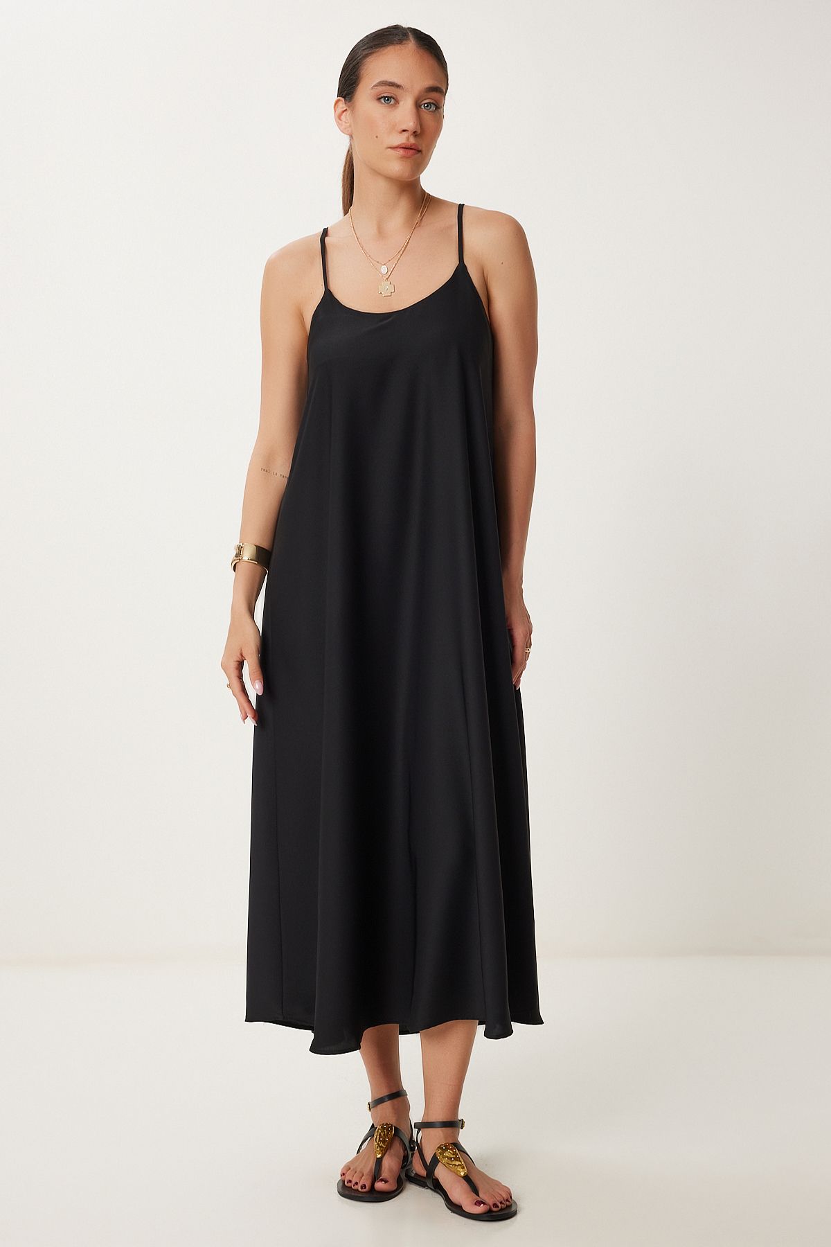 Lovelyİstanbul Askılı Dökümlü Şık Elbise SİYAH LGK0004