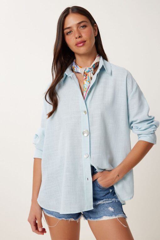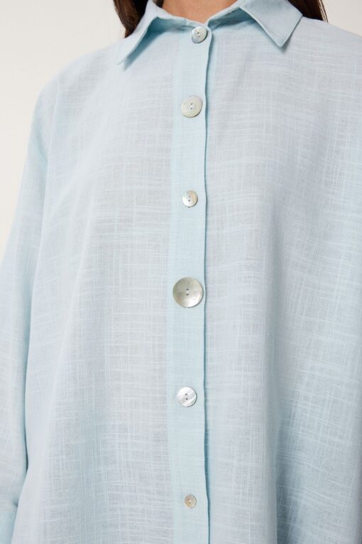 Lovelyİstanbul Şık Düğmeli Keten Gömlek GÖK MAVİ LDP0060