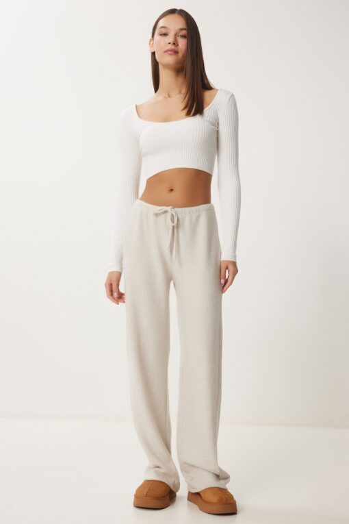 Lovelyİstanbul Yumoş Bol Örme Pantolon BEJ LUB0063
