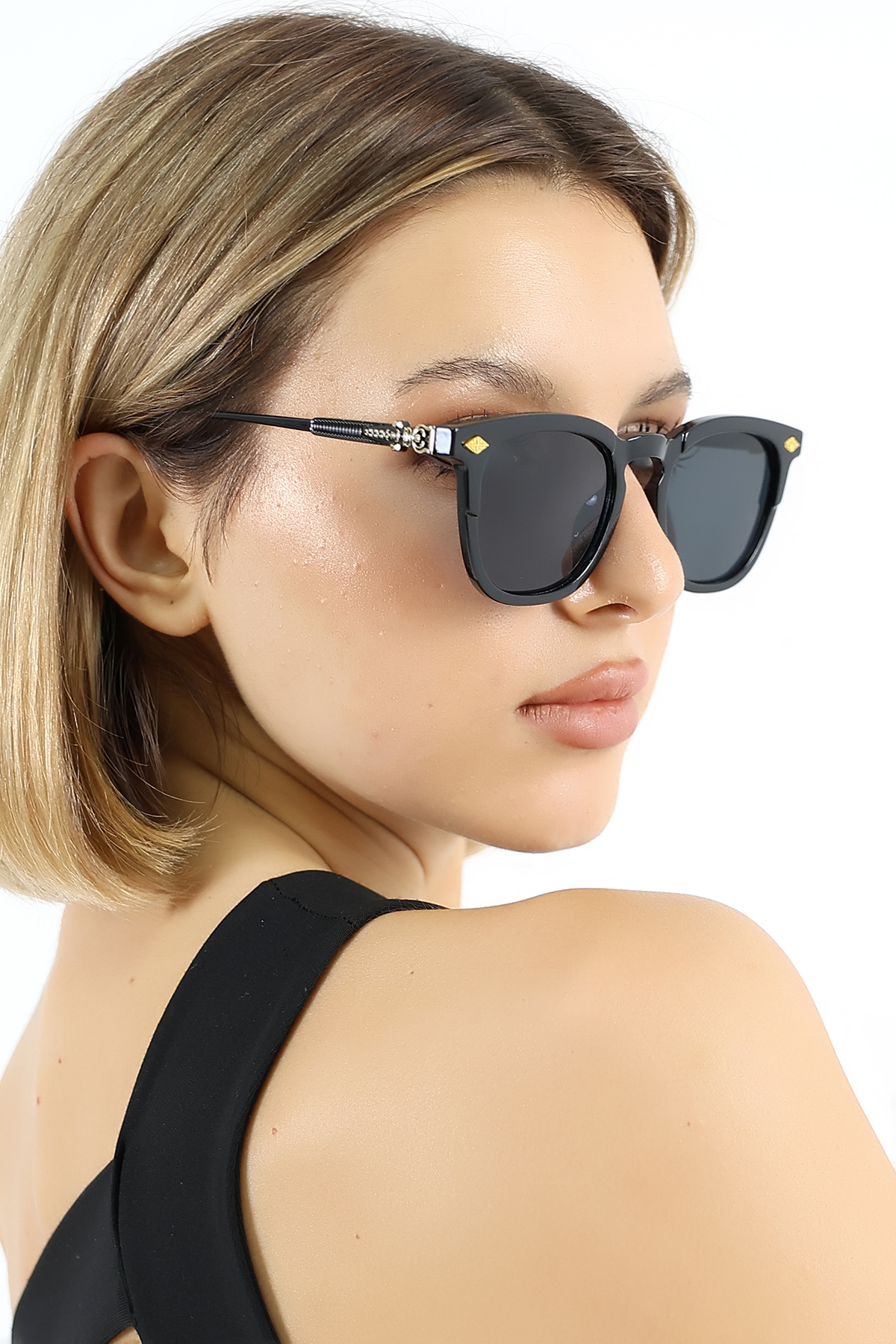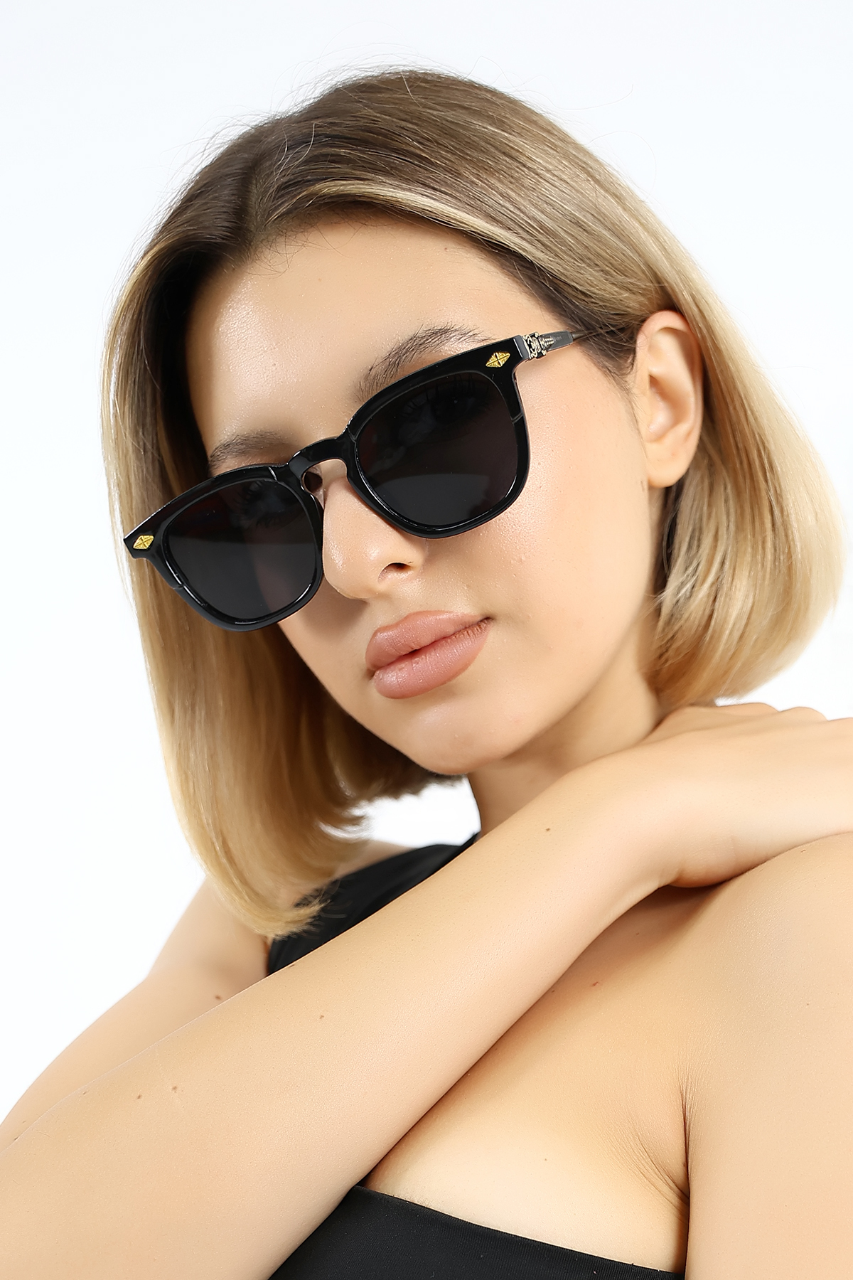 Lozzo Kadın Oval Siyah UV400 Güneş Gözlüğü Oksit Sap WP25-27 C2
