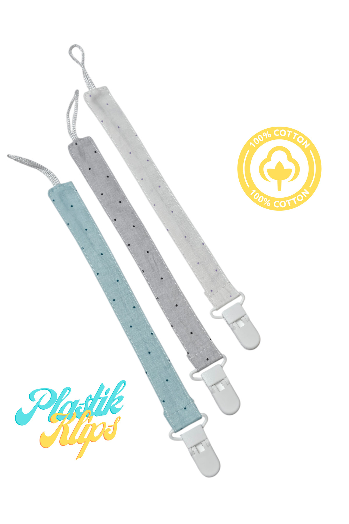 lucky baby Emzik Askısı Plastik Klips Emzik Tutucu %100 Pamuklu Kumaş Puantiye seri
