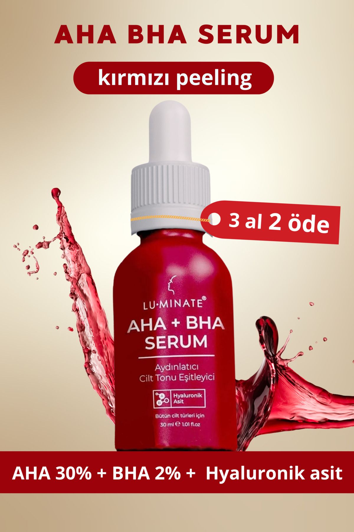 Luminate Aha-bha Serumu Glikolik Salisilik Asit Leke Karşıtı Cilt Tonu Eşitleyici Kırmızı Peeling ürünü ucuz fiyat, hızlı kargo imkanı ile hemen sitemizden sipariş verin.