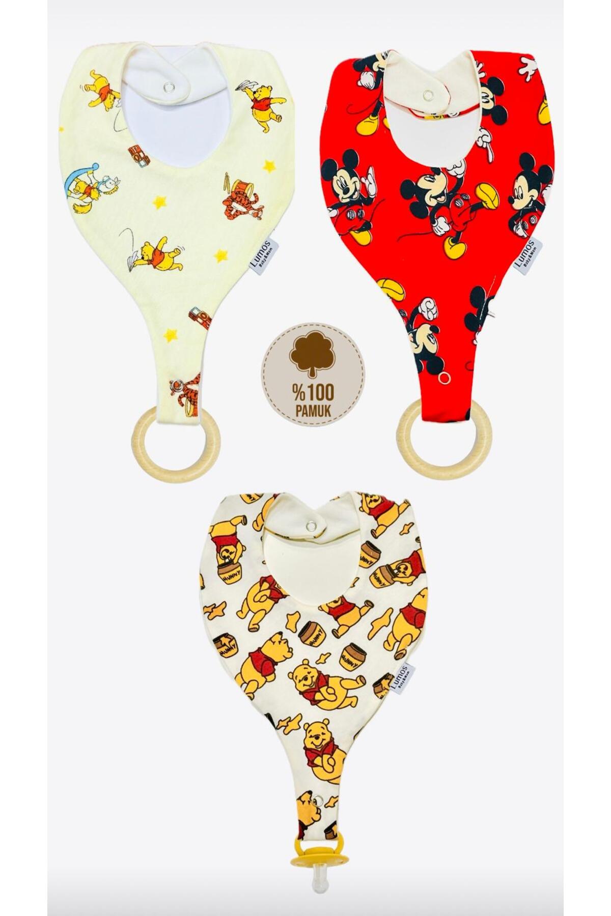 Lumos Trade Emzik Tutucu Mama Önlüğü – Renkli Ve Desenli %100 Pamuk Kumaş Emzik Askısı Seti 3 Adet