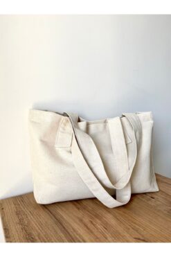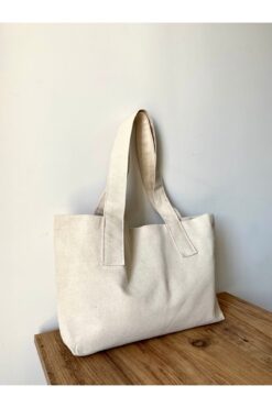 LUNAFEL Bej Ham Keten Kol Omuz Çantası-büyük Boy