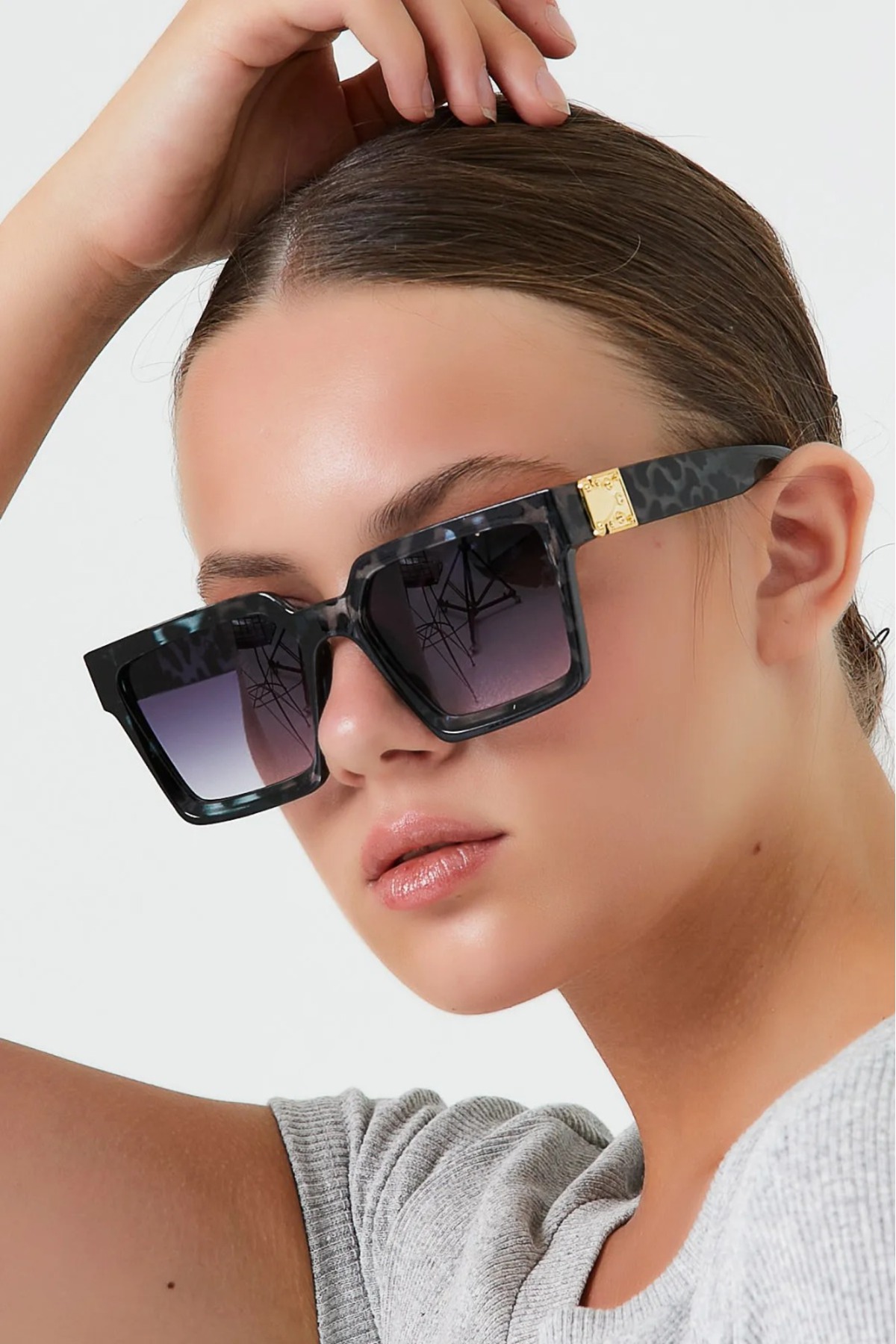 Eyesofia Hude Geometrik Yeni Sezon Popüler Kadın Leopar Kahverengi Güneş Gözlüğü