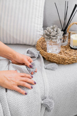 Lux Touch Lavi Ponponlu Gri Koltuk Örtüsü 115 x 200 cm Kanepe Divan Çekyat Berjer Örtüsü Şalı Püsküllü