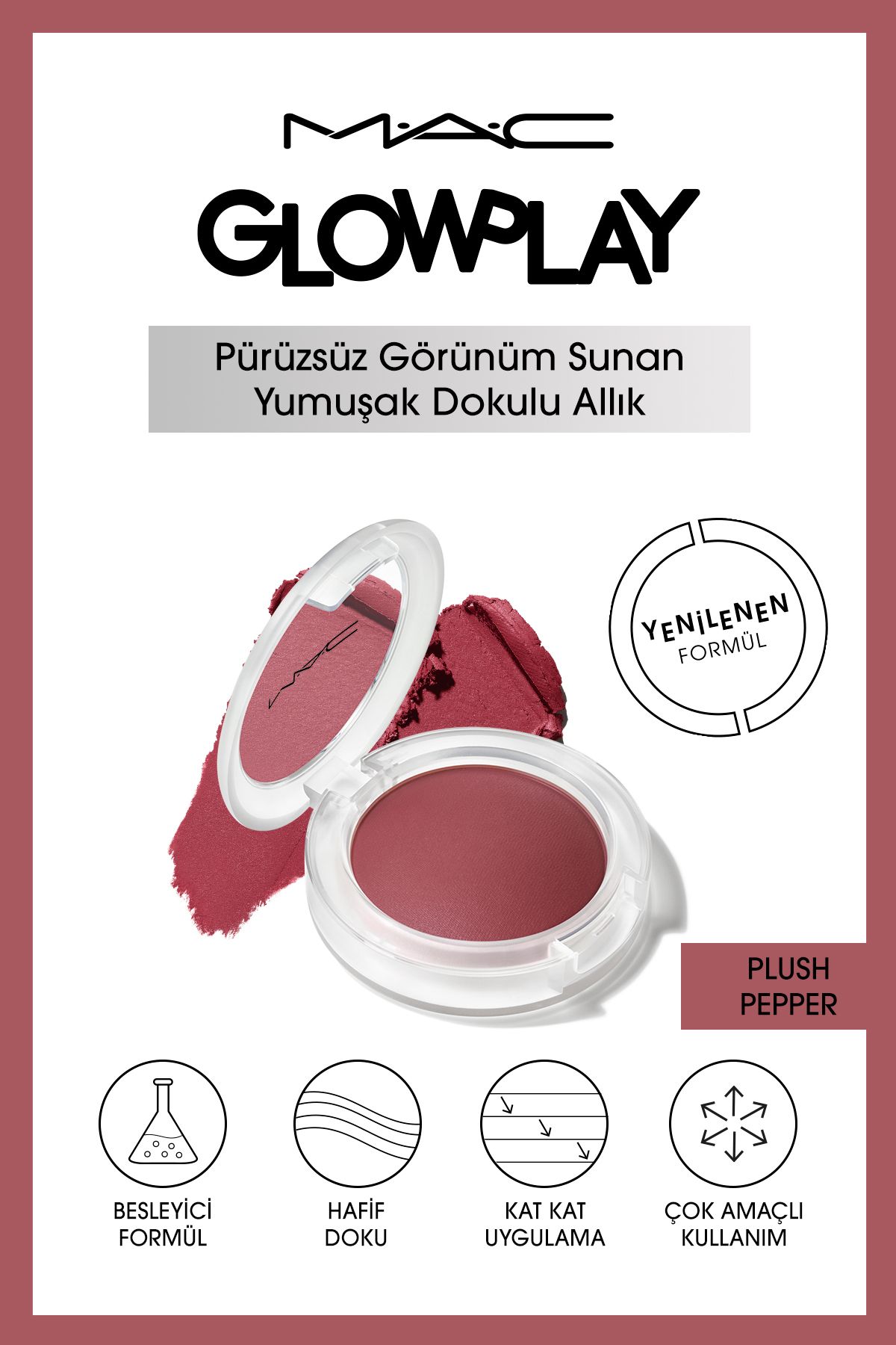 M.A.C Glow Play Yumuşak Dokulu Kat Kat Uygulanabilen Allık – Plush Pepper 7.3 G