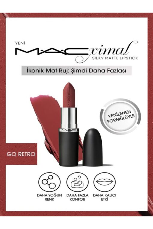 M.A.C M·a·cximal Silky Matte Lipstick Nemlendirme Etkili Yoğun Renk Sağlayan Ruj - Go Retro ürününü en uygun fiyata kozmetikara.com sitemizden sipariş verebilirsiniz.