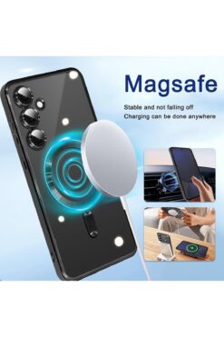 m.tk moveteck Samsung Galaxy A16 Kılıf Magsafe Wirelles Şarj Destekli Parlak Renkli Kenarlı Arkası Şeffaf Silikon