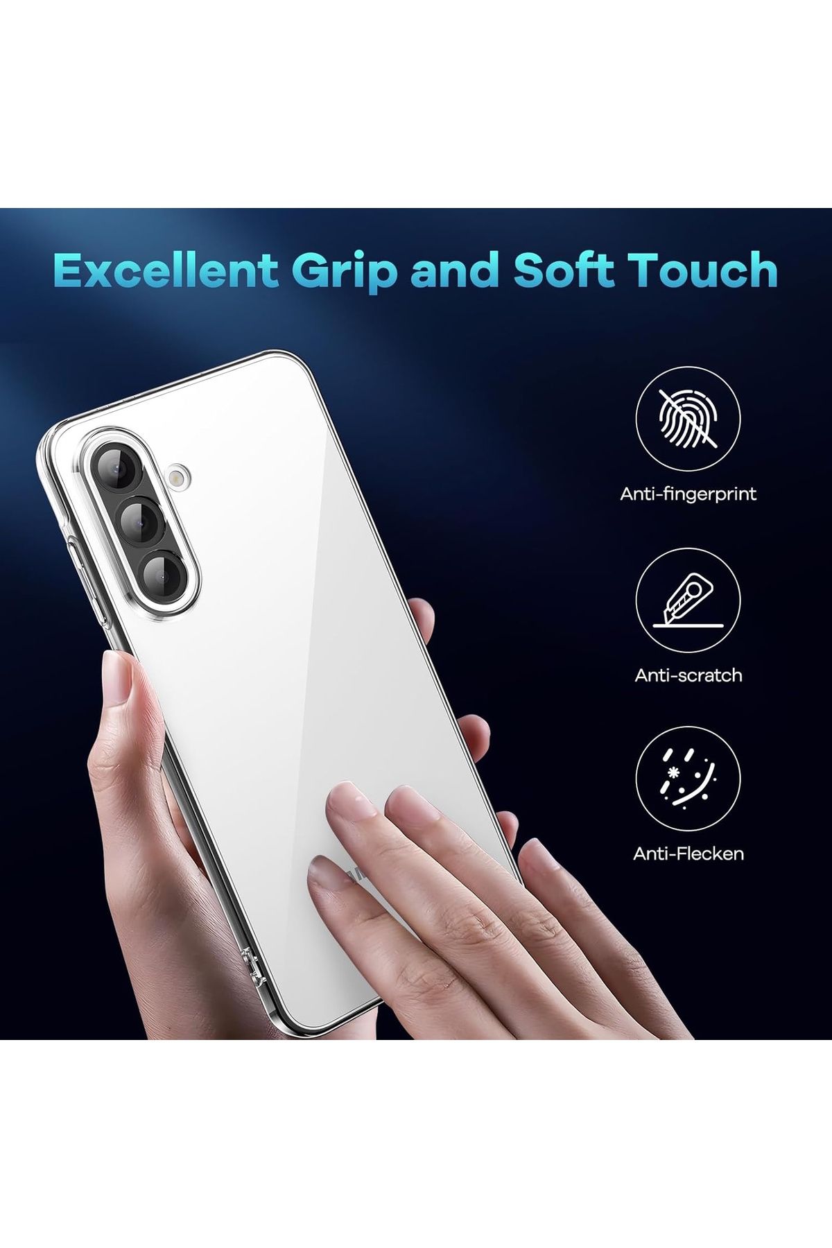 m.tk moveteck Samsung Galaxy A36 Kılıf Kamera Çıkıntılı Korumalı Yumuşak Şeffaf Silikon +9H Ekran Koruyucu Cam Set