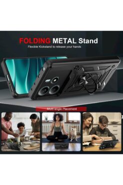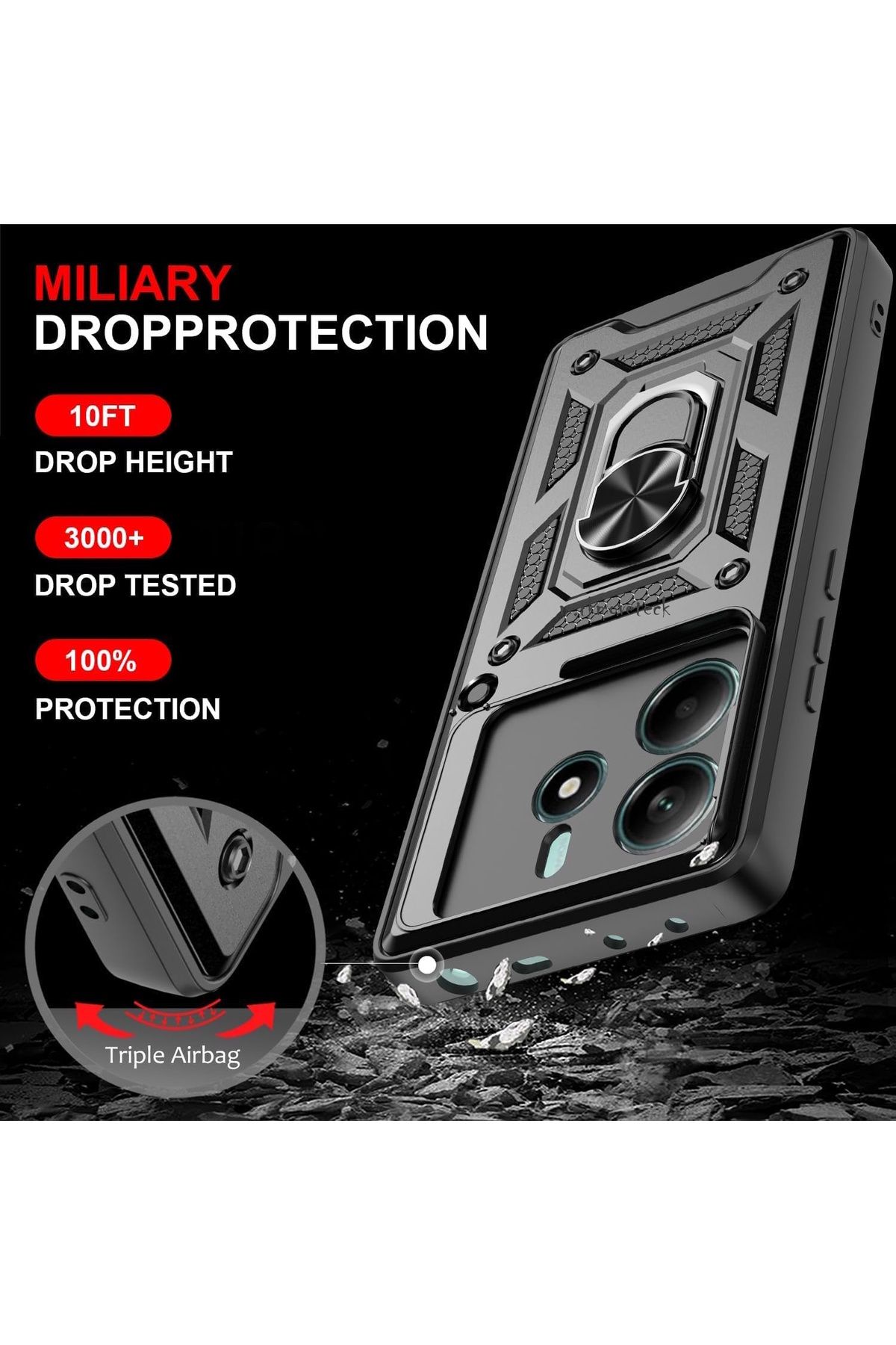 m.tk moveteck Xiaomi Redmi Note 14 Kılıf Kamera Korumalı Sürgülü Yüzüklü Armor Military Tank Zırh Kızaklı Kapak