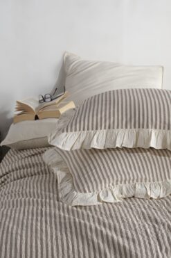 Macas Home Soil %100 Pamuklu Fırfırlı Ipliği Boyalı Çift Kişilik Nevresim Takımı 200*220