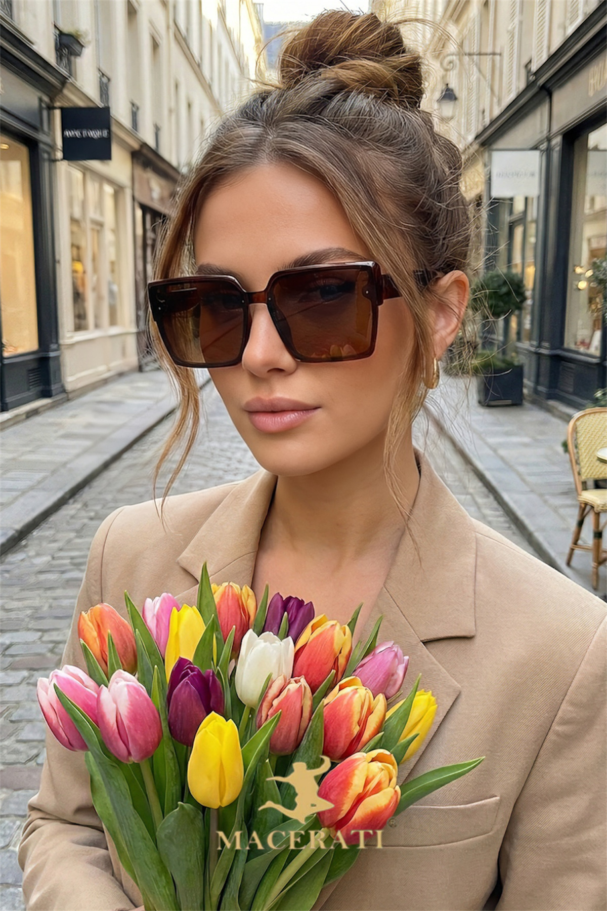 MACERATİ Milan Unisex Kahverengi Kare Lüx Güneş Gözlüğü