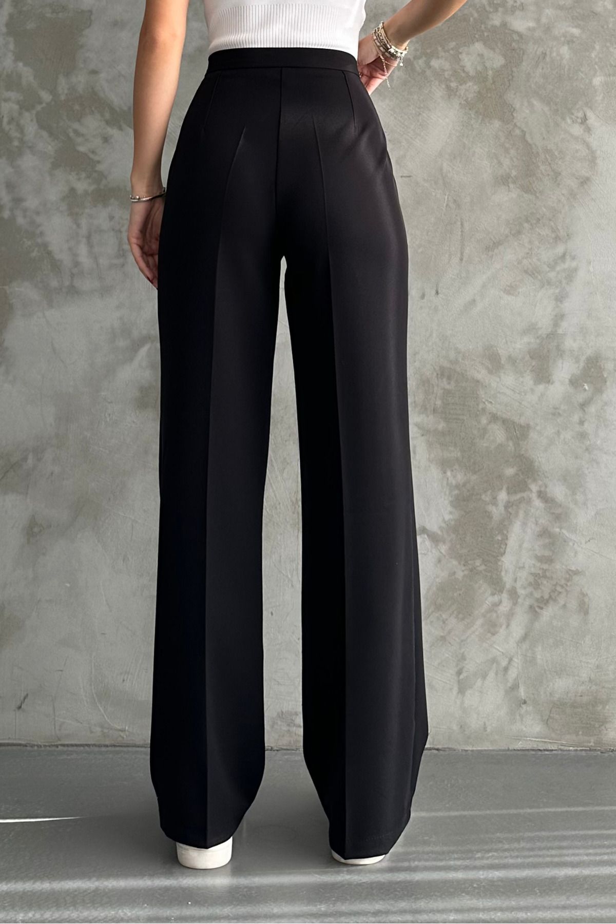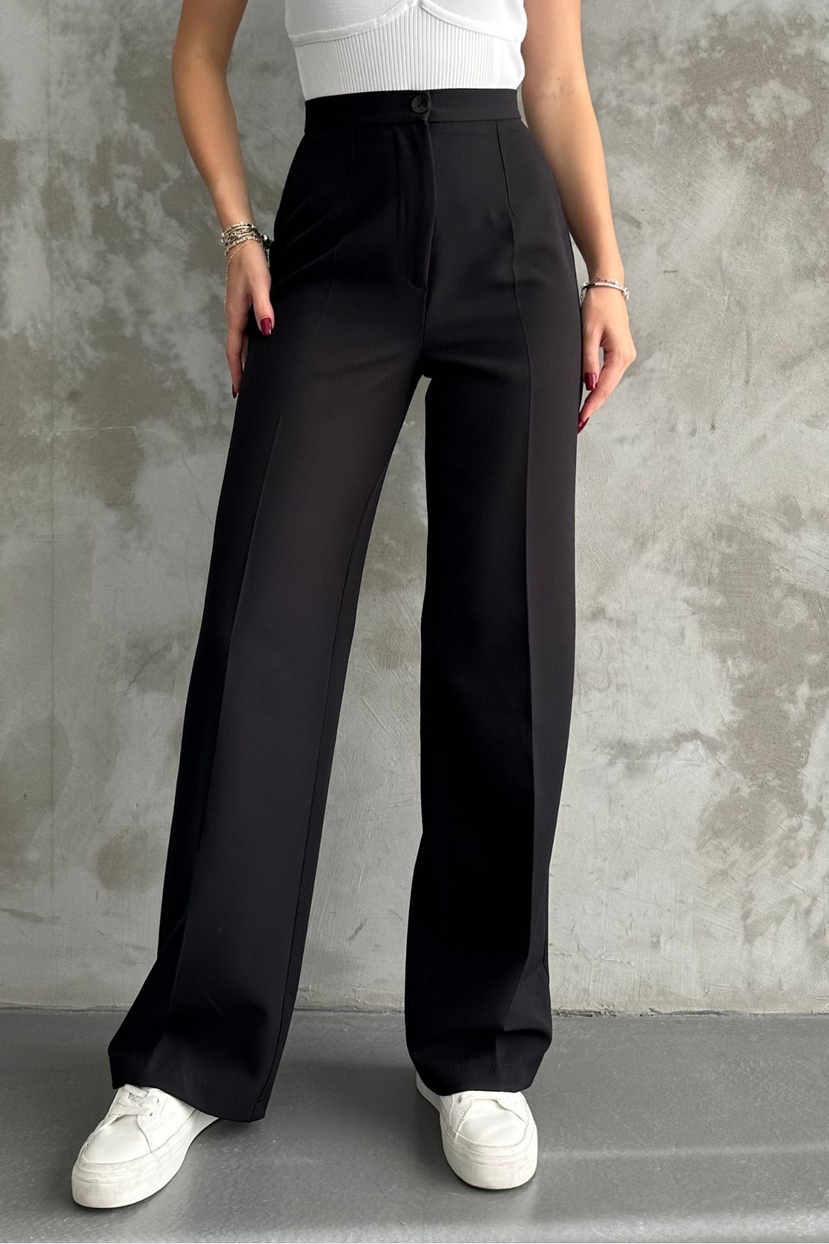 macharel jeans Kadın Yeni Sezon Yüksek Bel Klasik Siyah Kumaş Pantolon