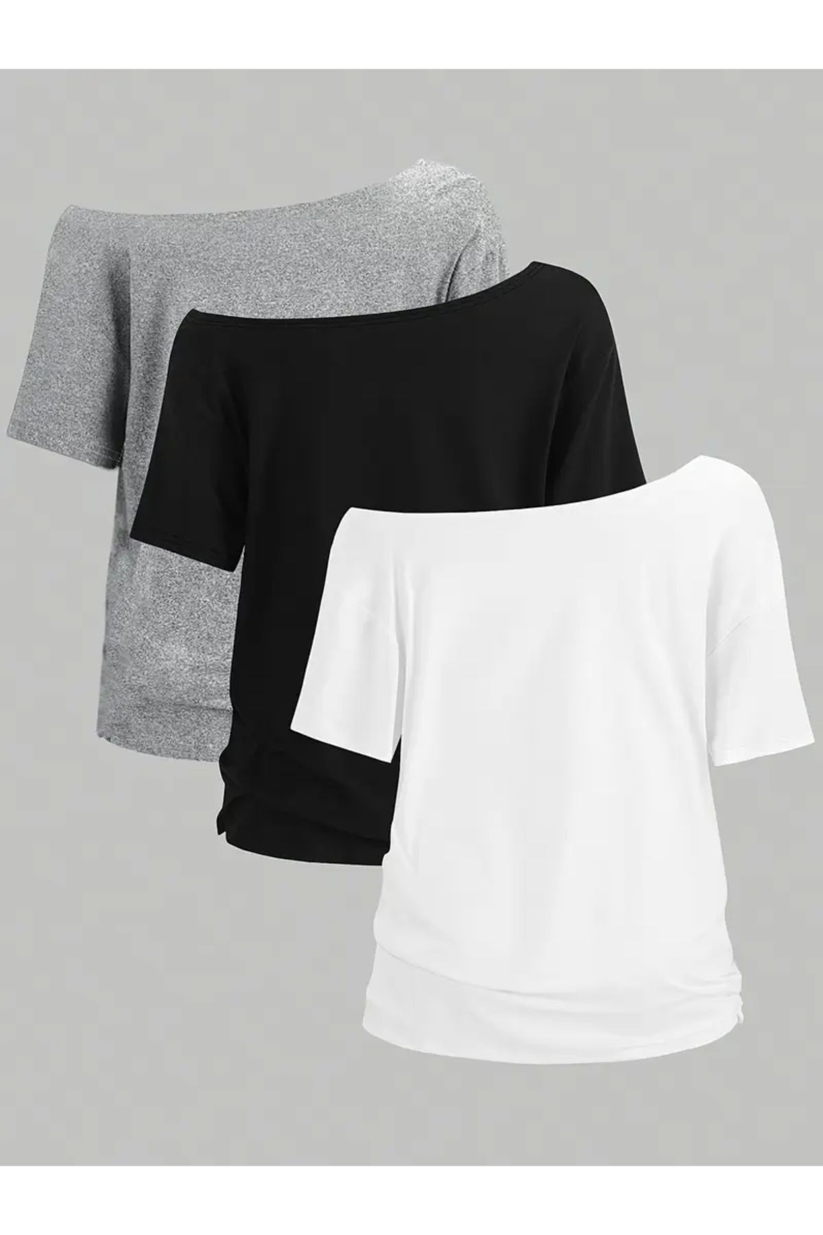 Machetta Kadın Düşük Omuz Kayık Yaka 3’lü T-shirt Set en ucuz fiyata kozmetikara.com sitemizden sipariş verebilirsiniz.