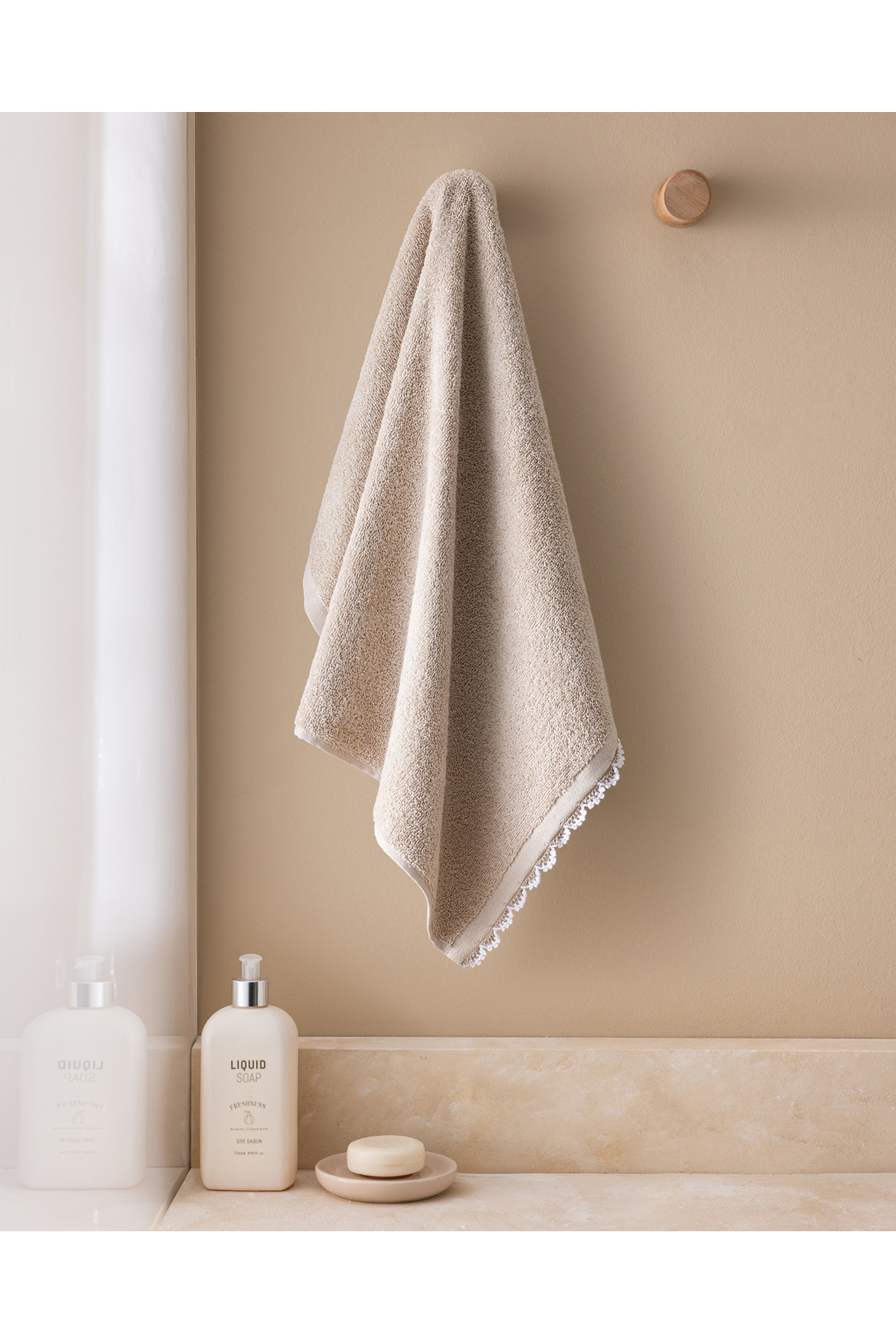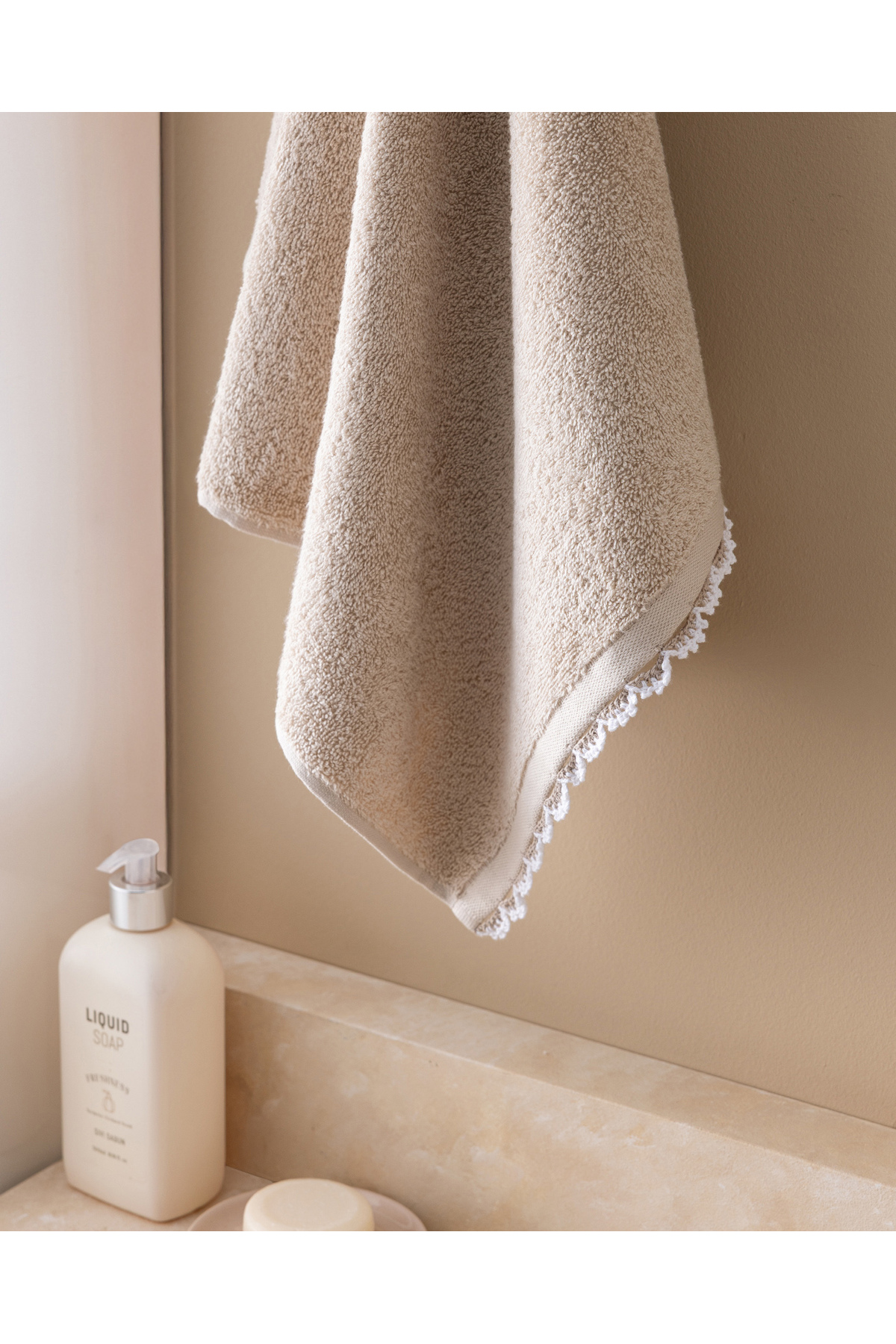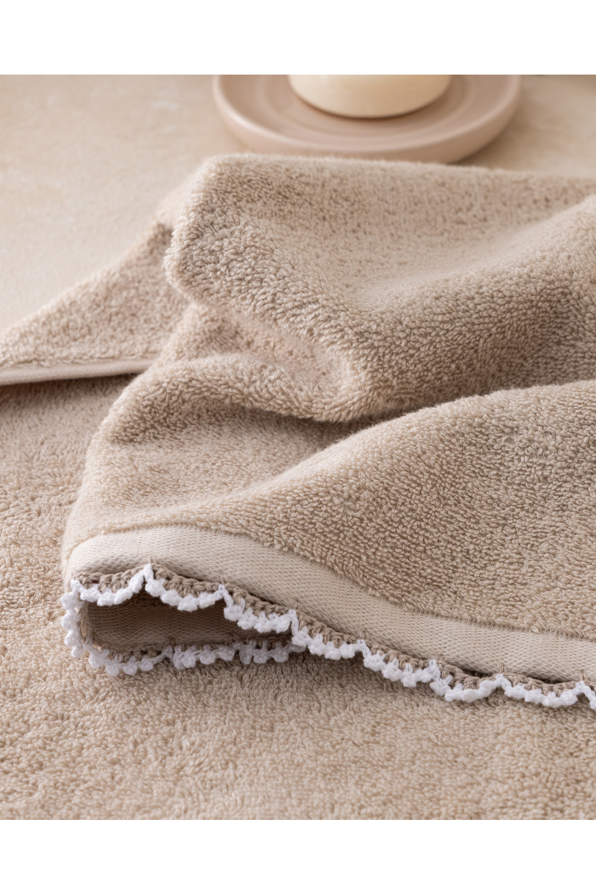 Madame Coco Bastienne Kroşeli %100 Pamuk Yüz Havlusu – Bej/Beyaz