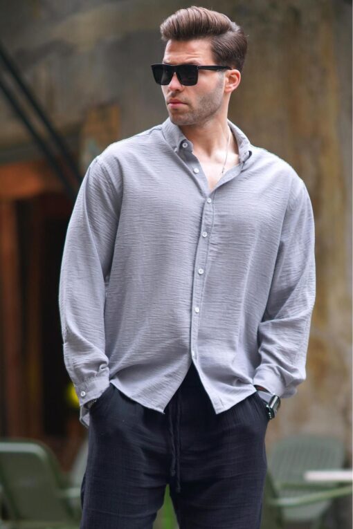 Madmext Gri Uzun Kollu Oversize Erkek Gömlek 6735