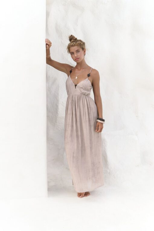 MAİ COLLECTİON Aden Boncuk Detay Vizon Elbise