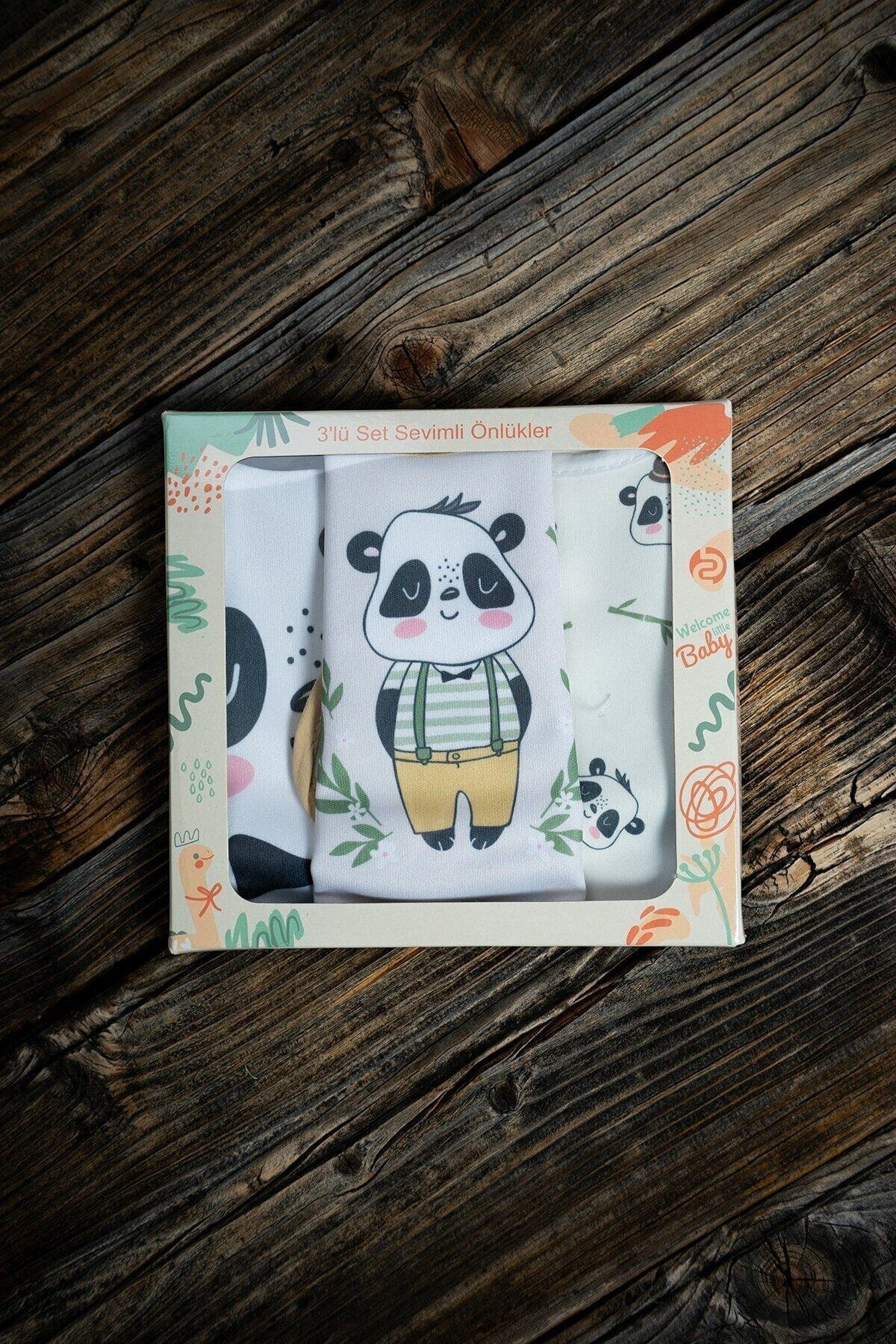 Mai Perla Panda Temalı Pamuklu Microfiber Unisex Bebek Mama Önlüğü