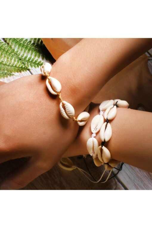 Major Butik Deniz Kabuklu Tek Sıra Deri Ipli Bileklik Halhal Krem
