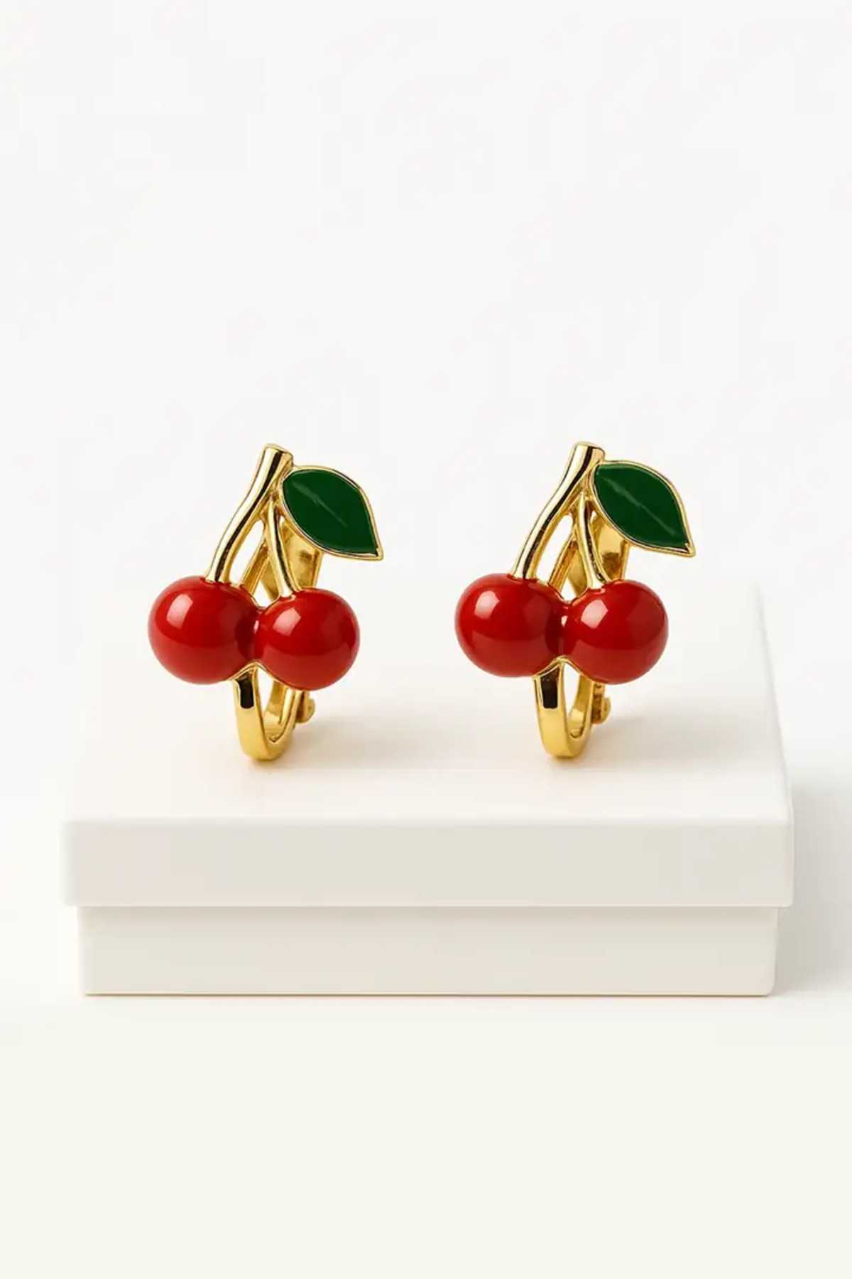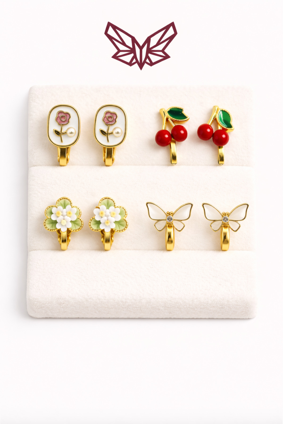 MakeWell Ekonomik Paket Deliksiz küpe Fiyonk Kalp Çiçek Hello Kity Yonca Kiraz Tasarımlı Sıkıştırmalı Küpeler