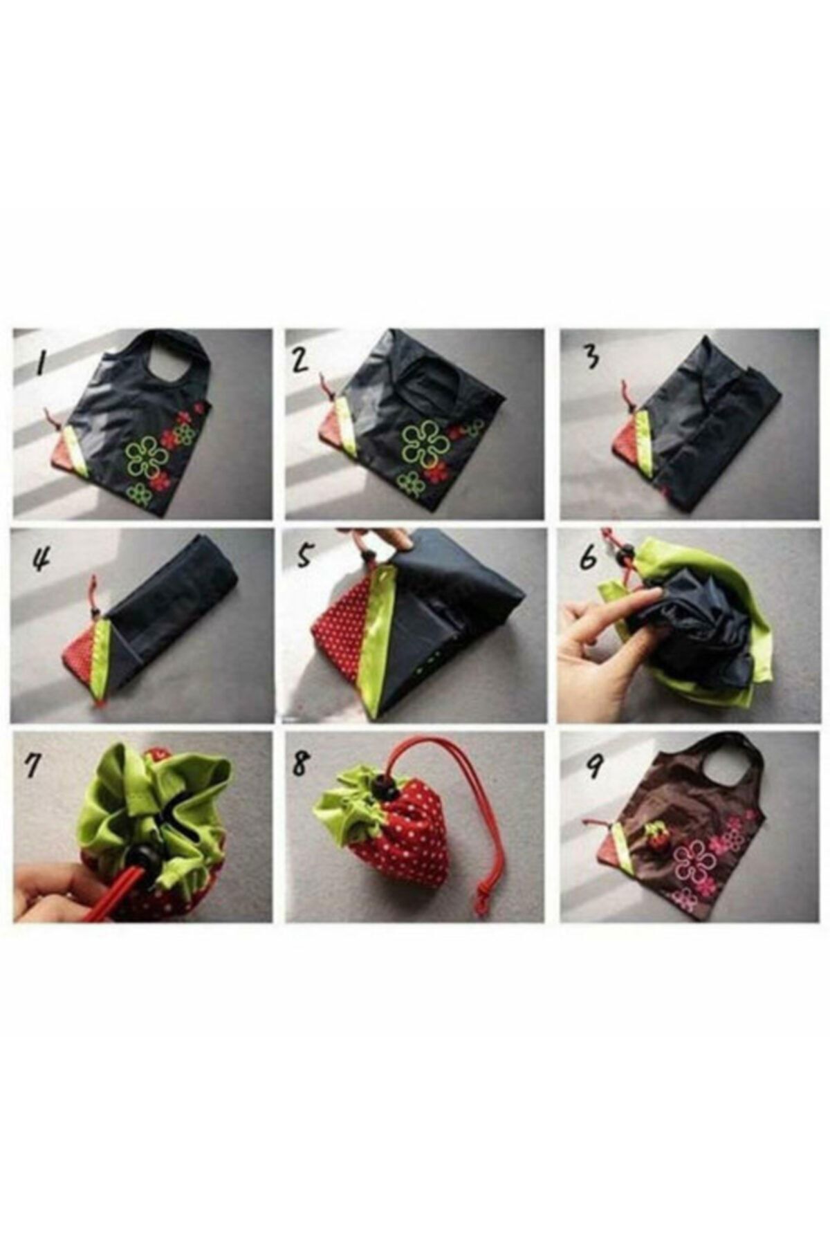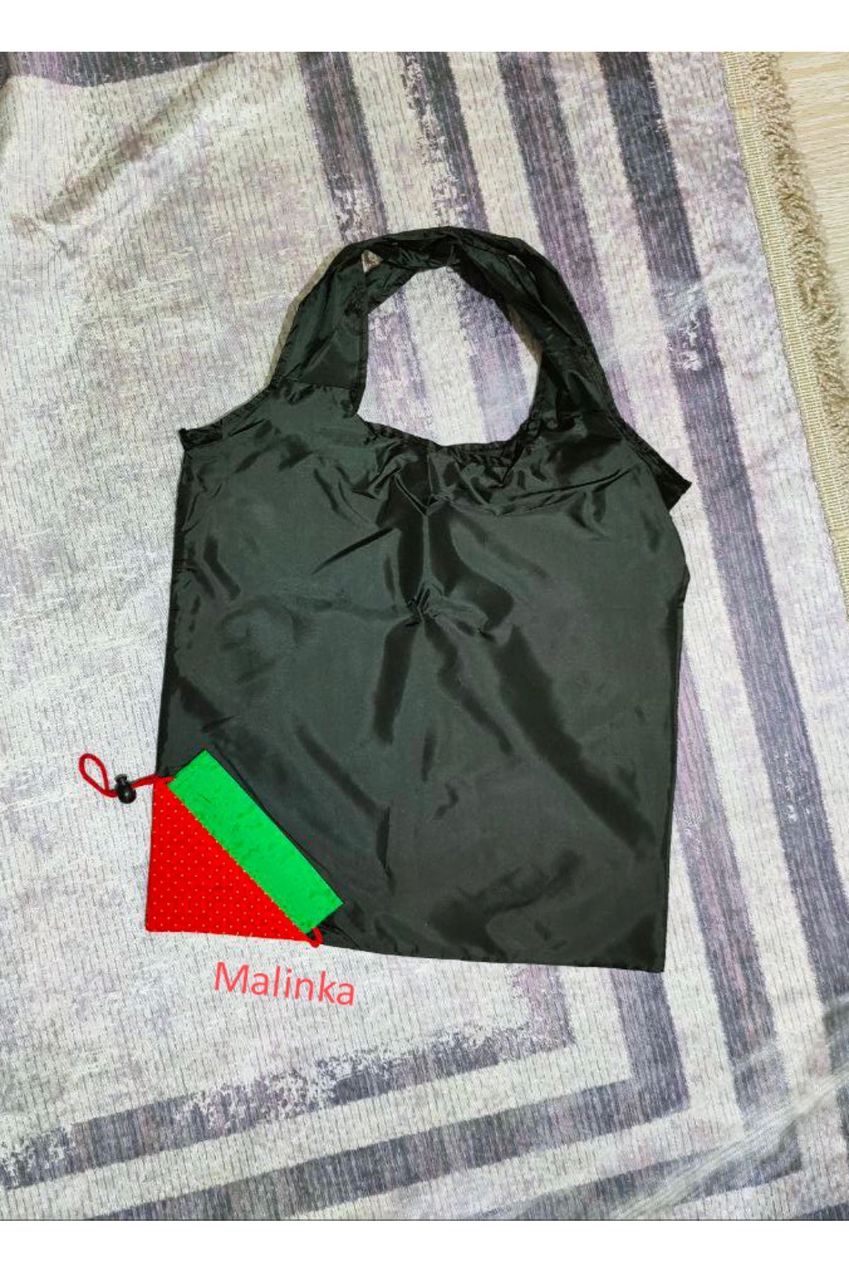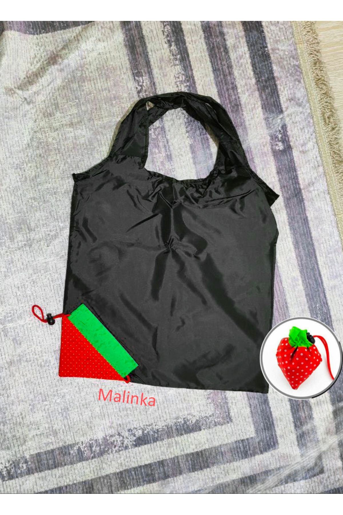 Malinka Yeni Yerli Siyah 58 cm X 38 cm Çilek Katlanabilir Bez Market Alışveriş Pazar Torba Katlanan