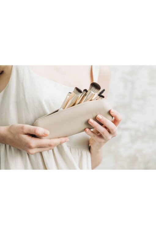 Mamastuff Silikon Makyaj Fırçası Çantası – Kalem Kutusu Organizer – Büyük Boy Bej