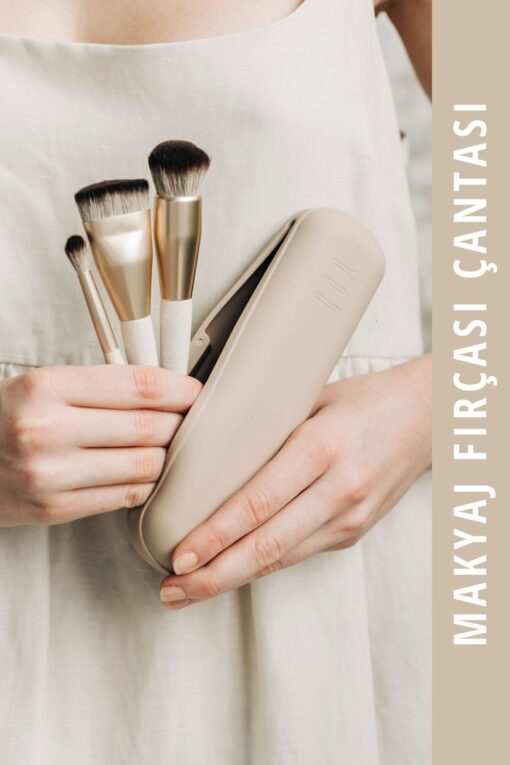 Mamastuff Silikon Makyaj Fırçası Çantası – Kalem Kutusu Organizer – Küçük Boy Açık Kahverengi