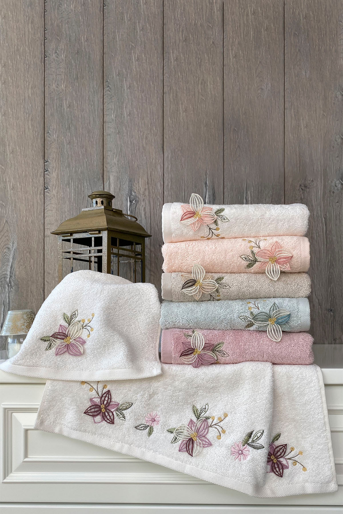 MARİBOR ALINA – %70 Bambu / %30 Pamuk 3D Nakışlı El Havlusu – 6’lı Set 50×90