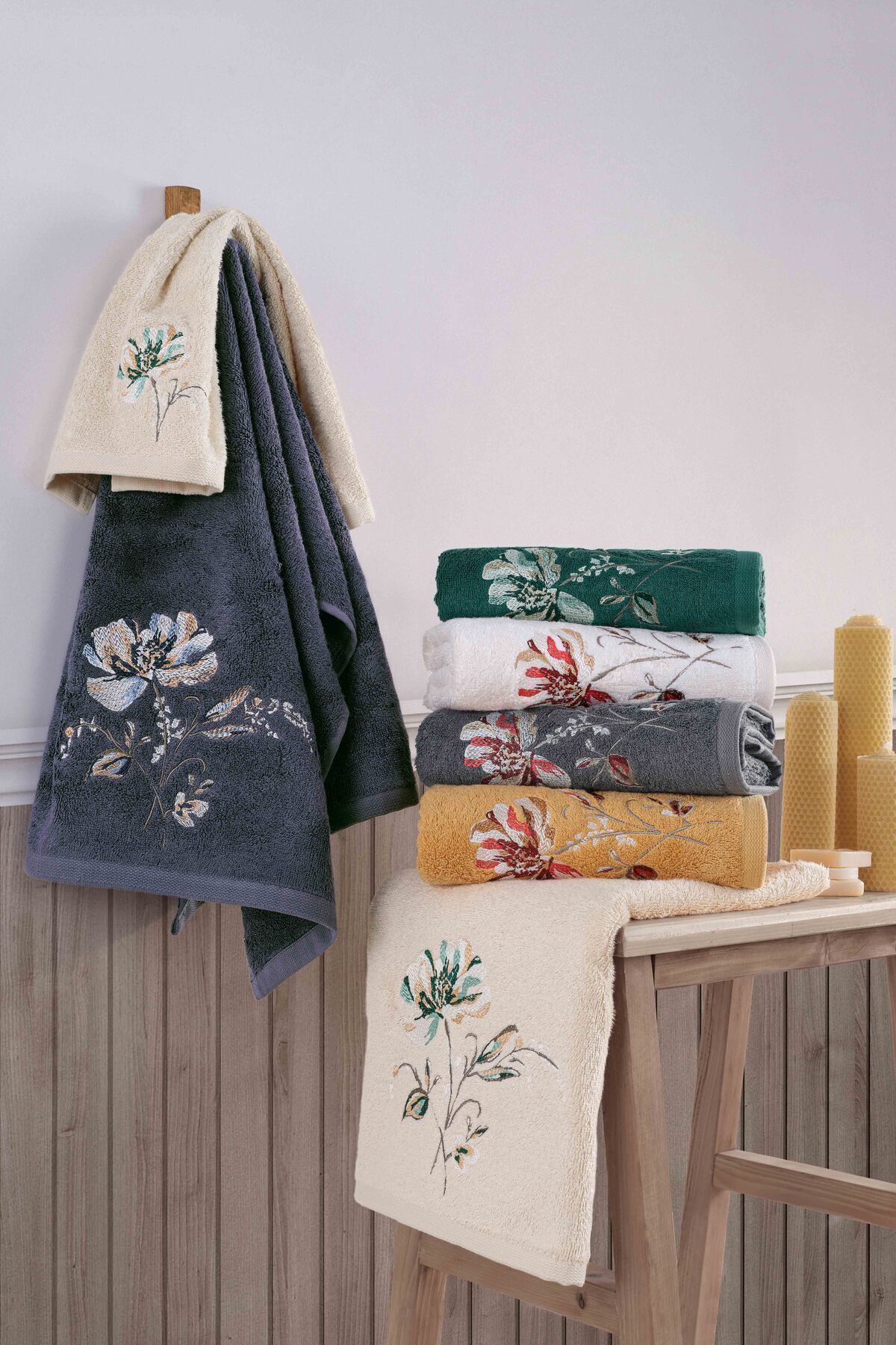 MARİBOR IMPERO – %70 Bambu / %30 Pamuk Nakışlı El Havlusu – 6’lı Set 50×90