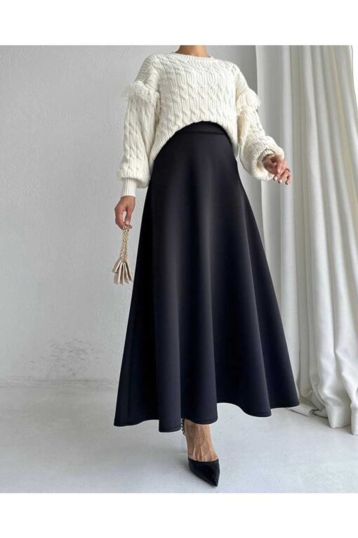 markatrend Kadın Scuba Krep Bel Lastikli Kiloş Etek Siyah