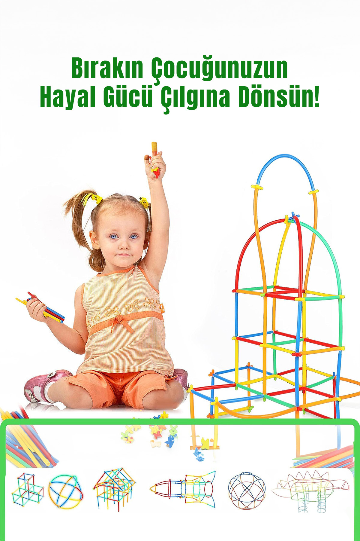 MAROKEN Bambuu Pipet Çubuk 300 Parça Hafıza Ilişki Kurma Zeka Dikkat Çocuk Beceri Gelişim Oyun