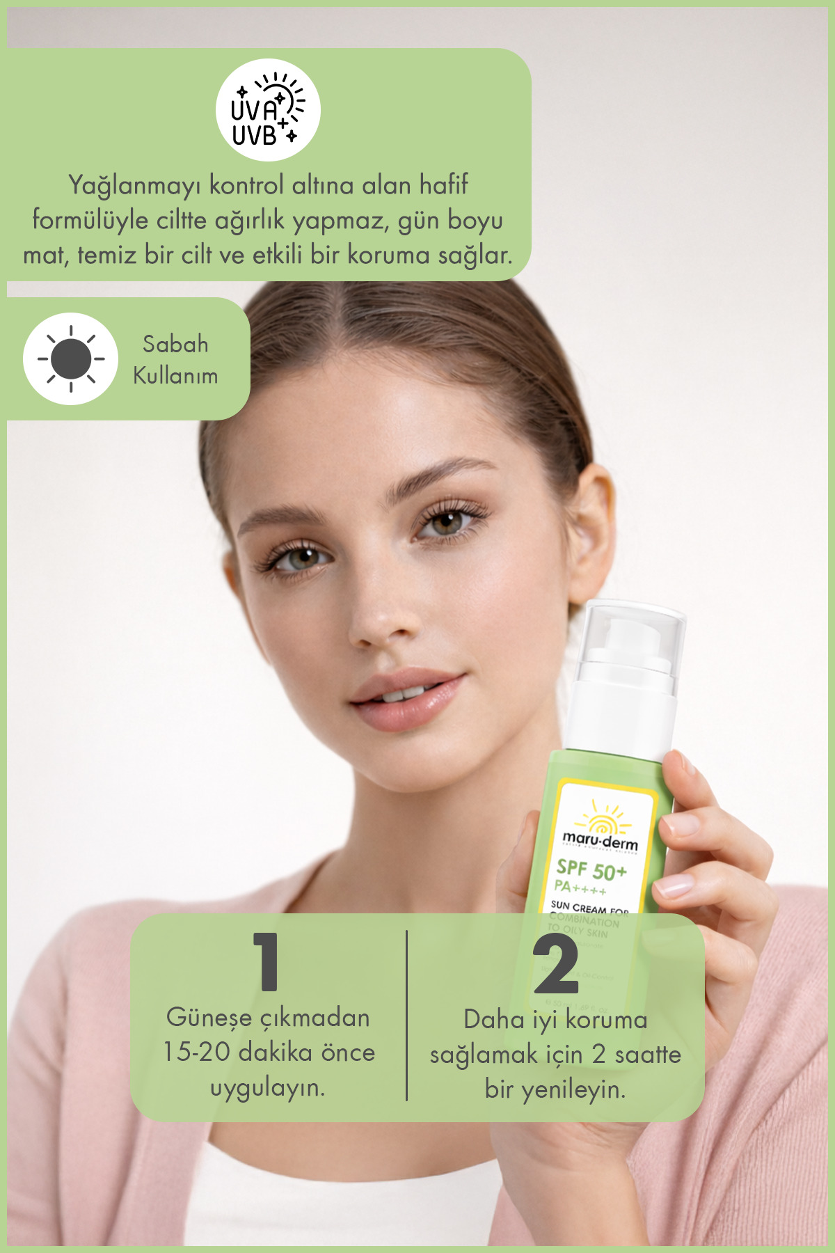 Maru.Derm Karma Ve Yağlı Ciltler için Güneş Kremi SPF 50+ PA++++ | Yeni Nesil Kore Filtreli 50 ML
