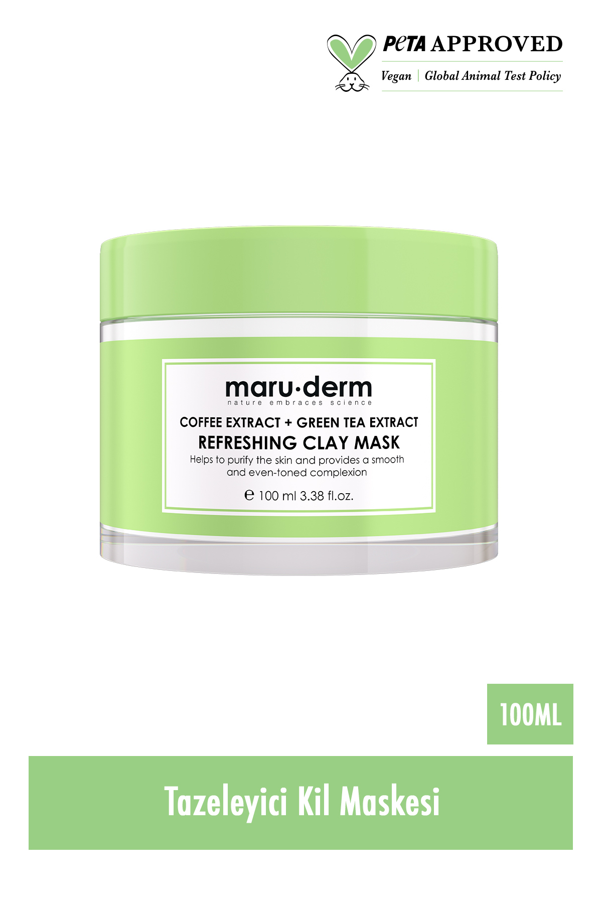 Maru.Derm Kil Maskesi | Kahve Özü + Yeşil Çay Özü Tazeleyici Kil Maskesi 100 ML | Tüm Cilt Tipleri | Vegan ürününü en uygun fiyata kozmetikara.com sitemizden sipariş verebilirsiniz.