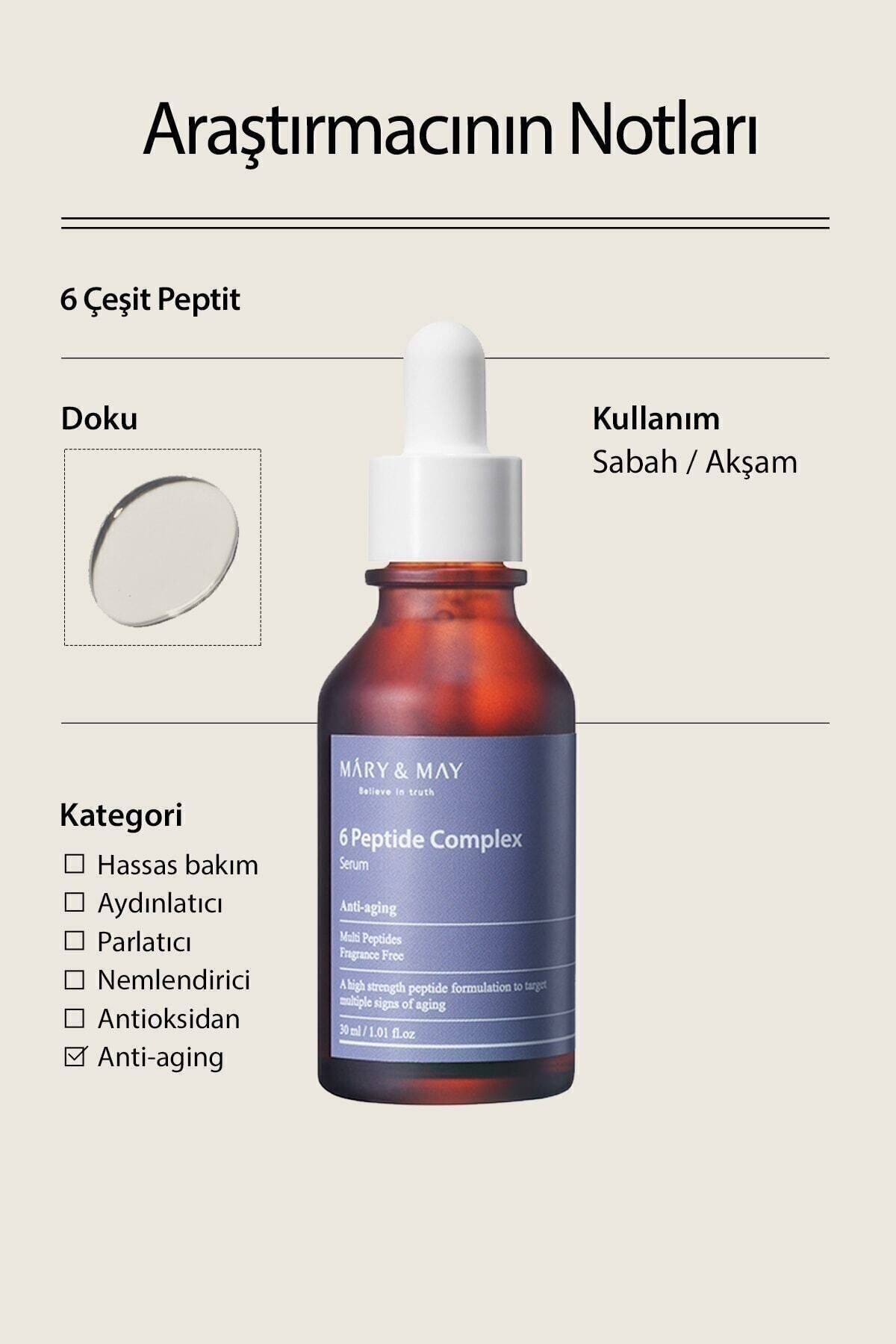 Mary & May Peptide Serum 6 Çeşit Peptid içeren Elastikiyet Kaybı Ve Yaşlanma Karşıtı Anti Aging Serum 30 ml