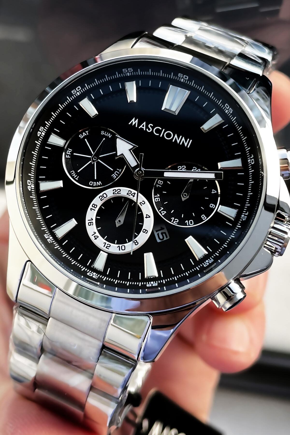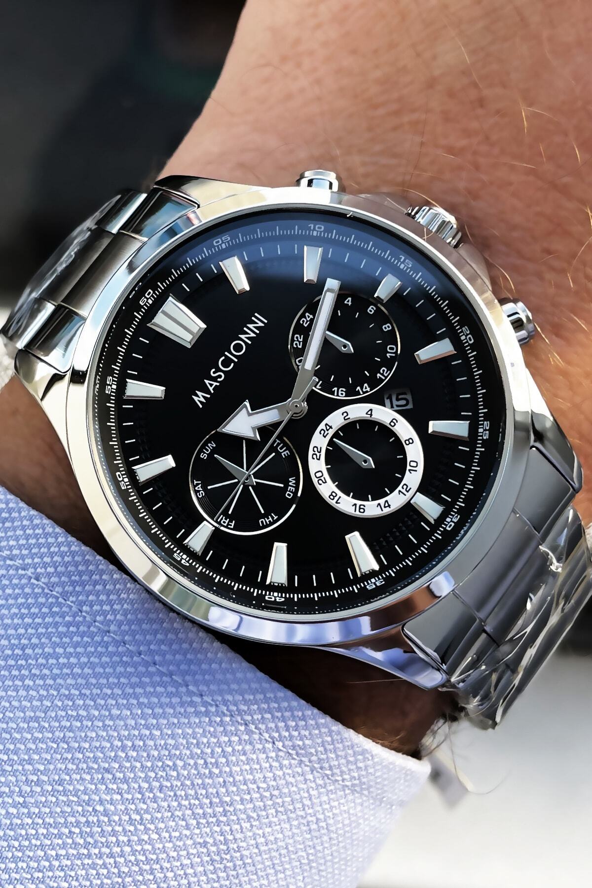 mascionni Erkek Kol Saati 3 Atm Su Geçirmez Gümüş Renk Çelik Kordon + Doğaltaş Elg383