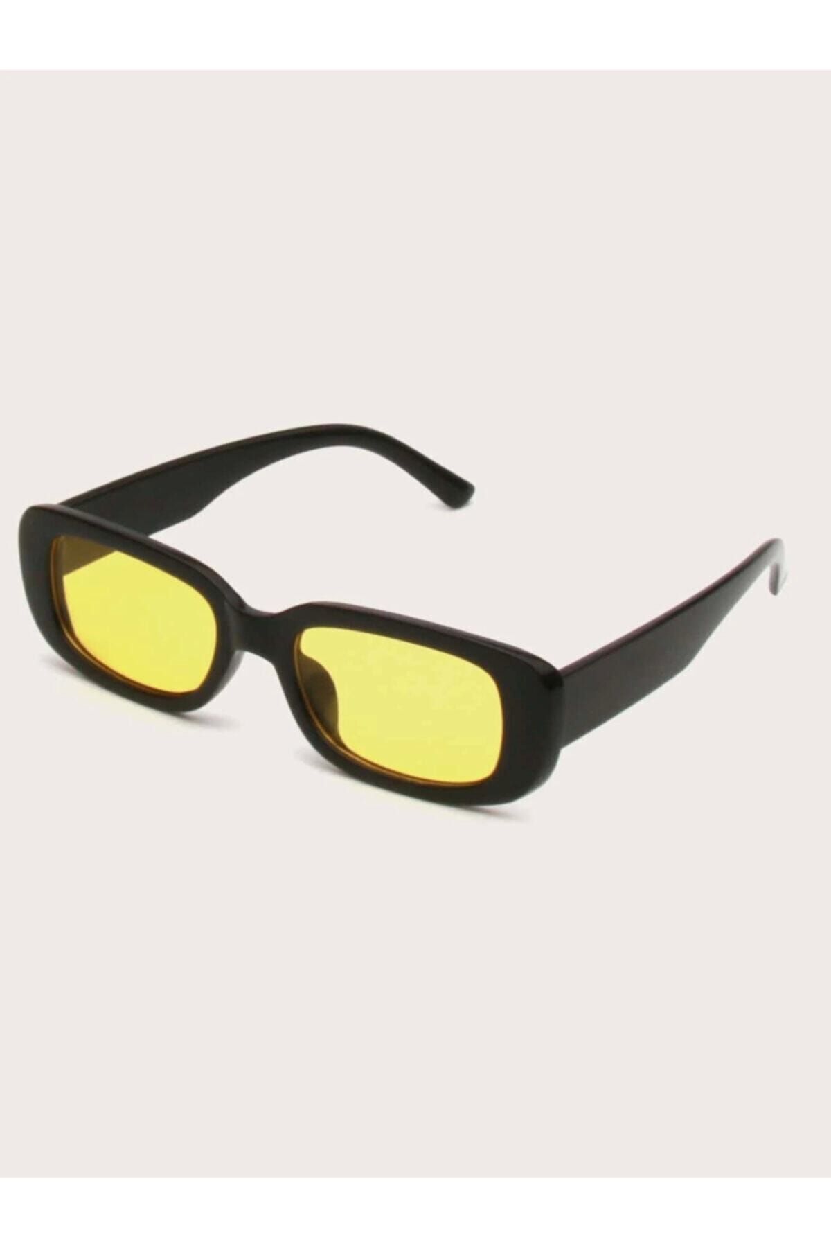 Mathilda Aksesuar Chunky Frame Vintage Sarı Siyah Güneş Gözlüğü