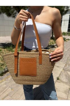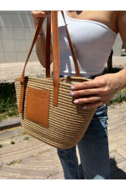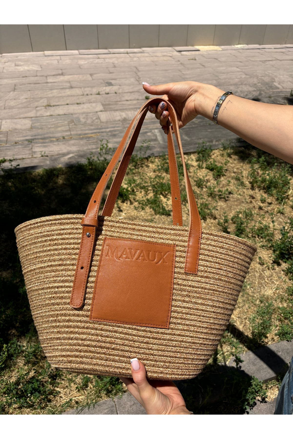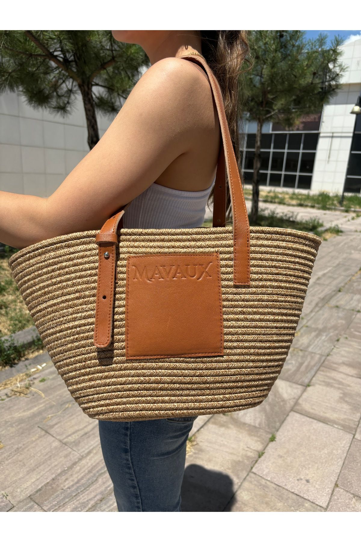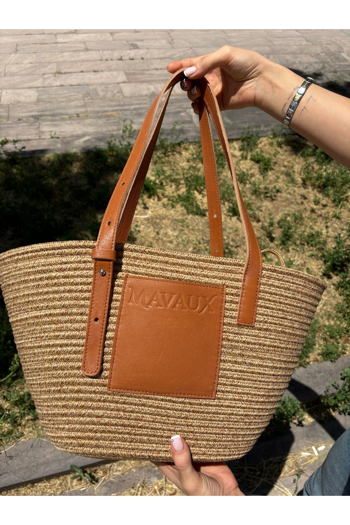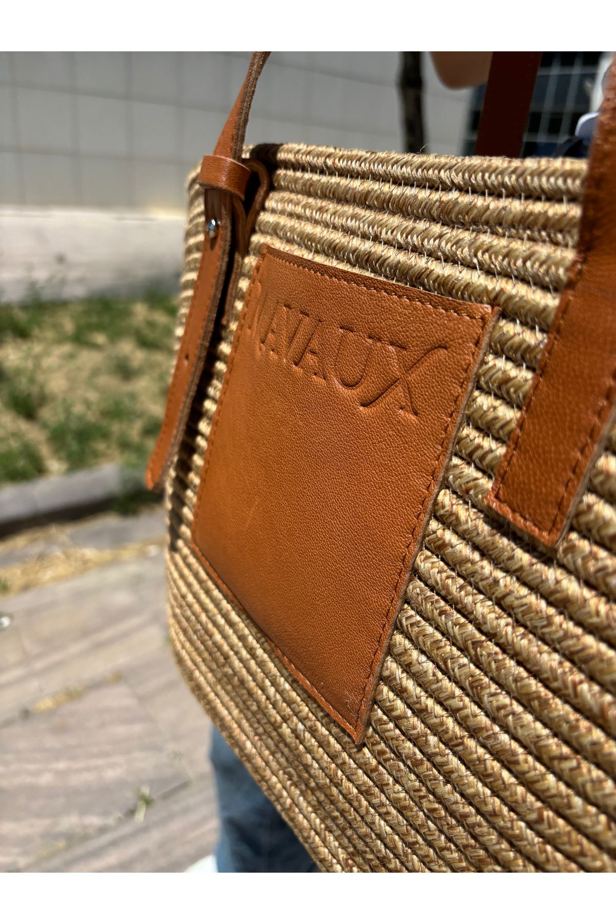 MaVaux İris Hakiki Deri İç Büzgülü Jüt Hasır Çanta