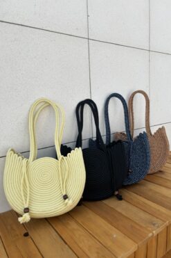 MaVaux Kuğu Model İç Astarlı Hasır Görünümlü Plaj ve Günlük, Şık ve Zarif Omuz Çantası