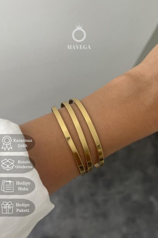 MAVEGA 3’lü Kalın Ajda Bilezik | Kararmaz Çelik, Altın Renk en ucuz fiyata kozmetikara.com sitemizden sipariş verebilirsiniz.