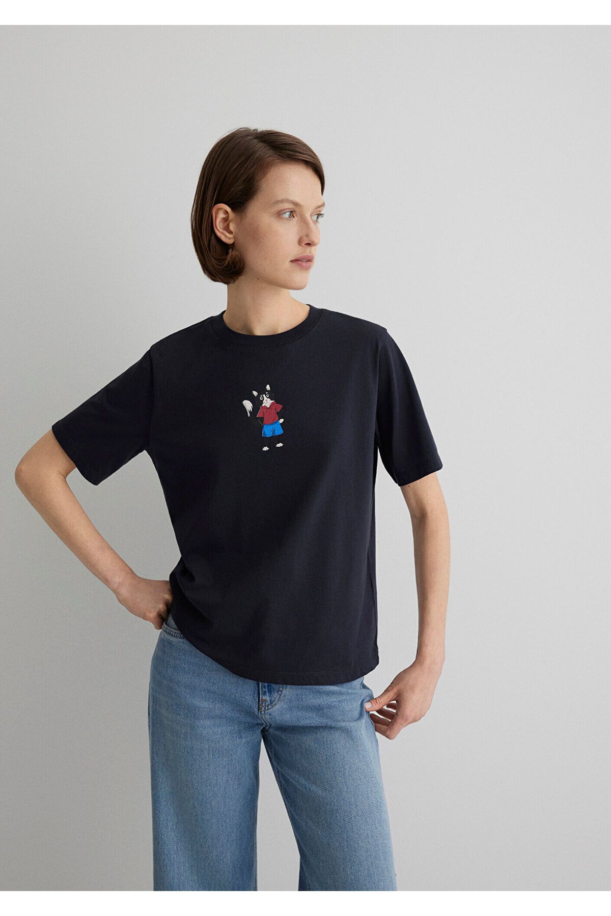 Mavi Kedi Baskılı Antrasit Tişört Regular Fit / Normal Kesim 1613178-70087