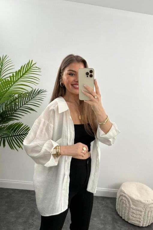 Maxi İdol Lüx Kalite Basic Salaş Gömlek Beyaz
